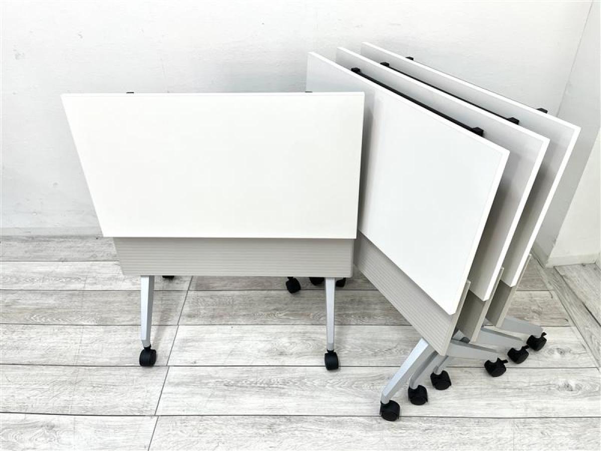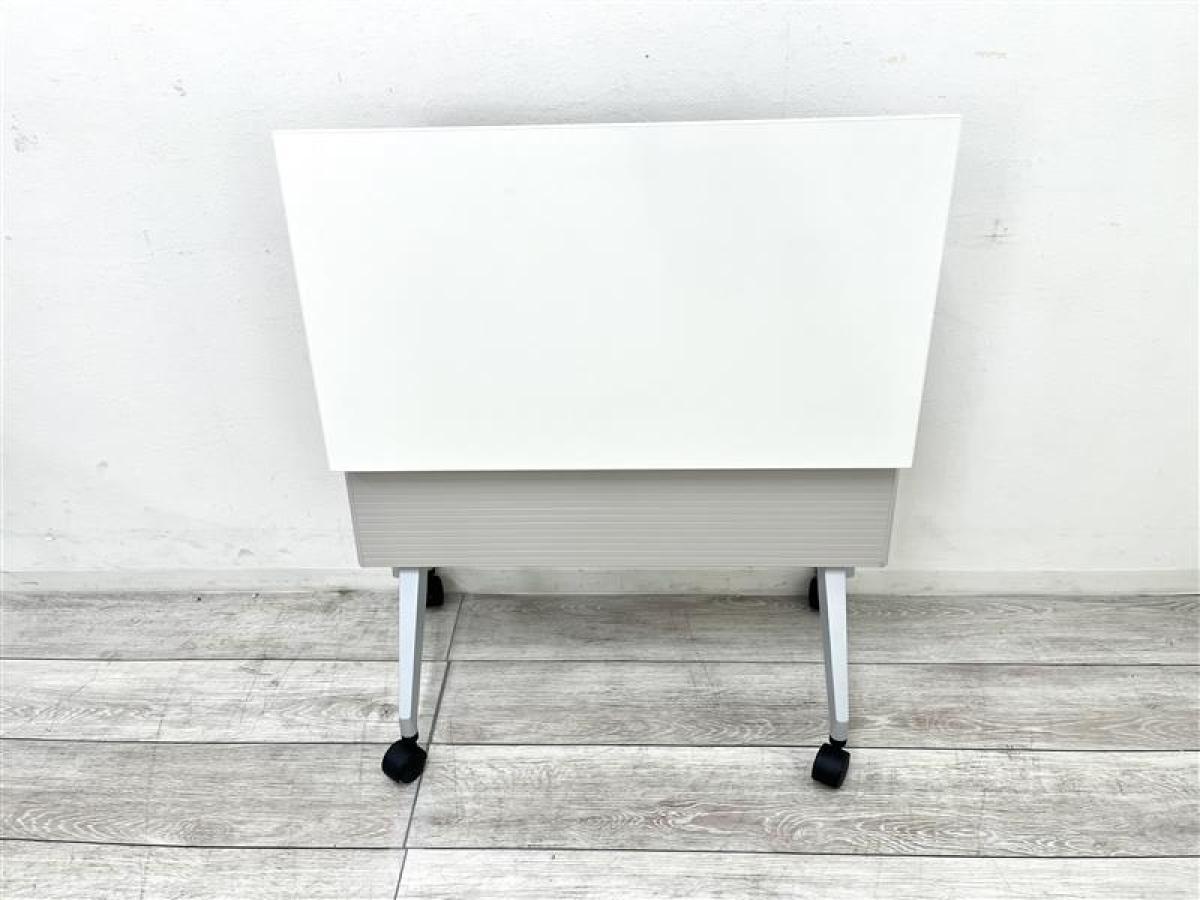 【定価約7万円】コンパクトな幅800㎜サイズのスタッキングテーブル! ■内田洋行/パラグラフ/ホワイト フラップテーブル 天板跳ね上げ 幕板付き