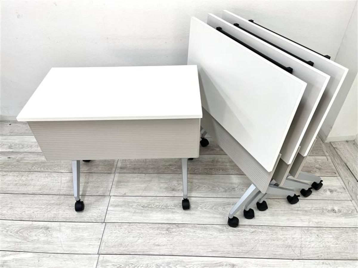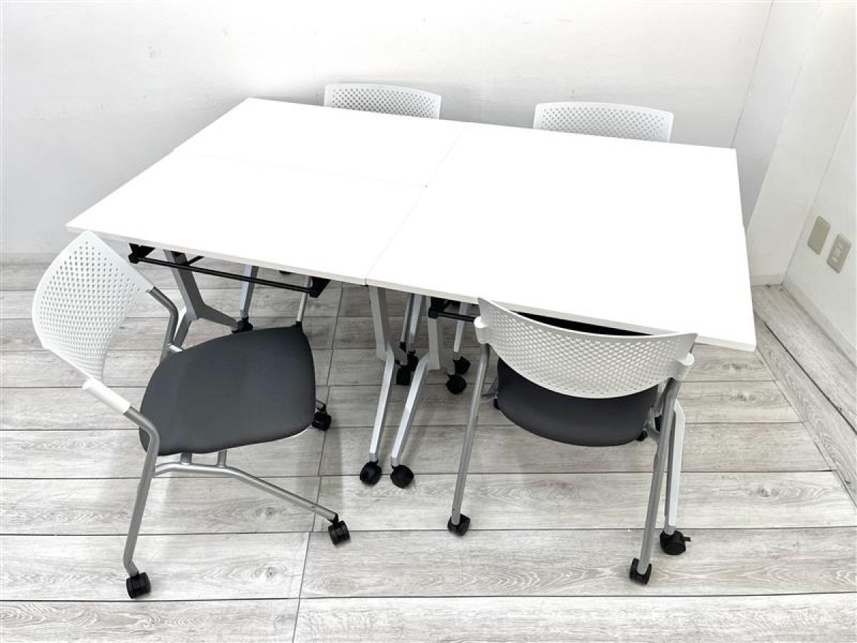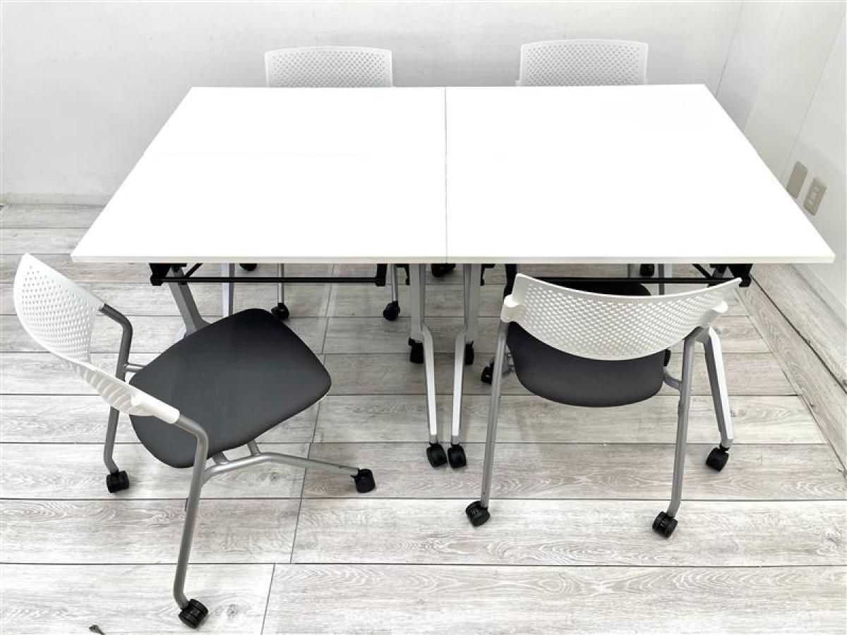 【セット商品】【定価約20万円以上】【ミーティングの際に便利なチェアとスタックテーブルの4点セット!】■内田洋行製 パラグラフ スタックテーブル ■ホワイト天板、幕板付き ■内田洋行/FM-265 ■ネスティングチェア ■キャスター付き ■背ホワイト×座グレー ※セット商品のため配送料要相談※- 仙台店