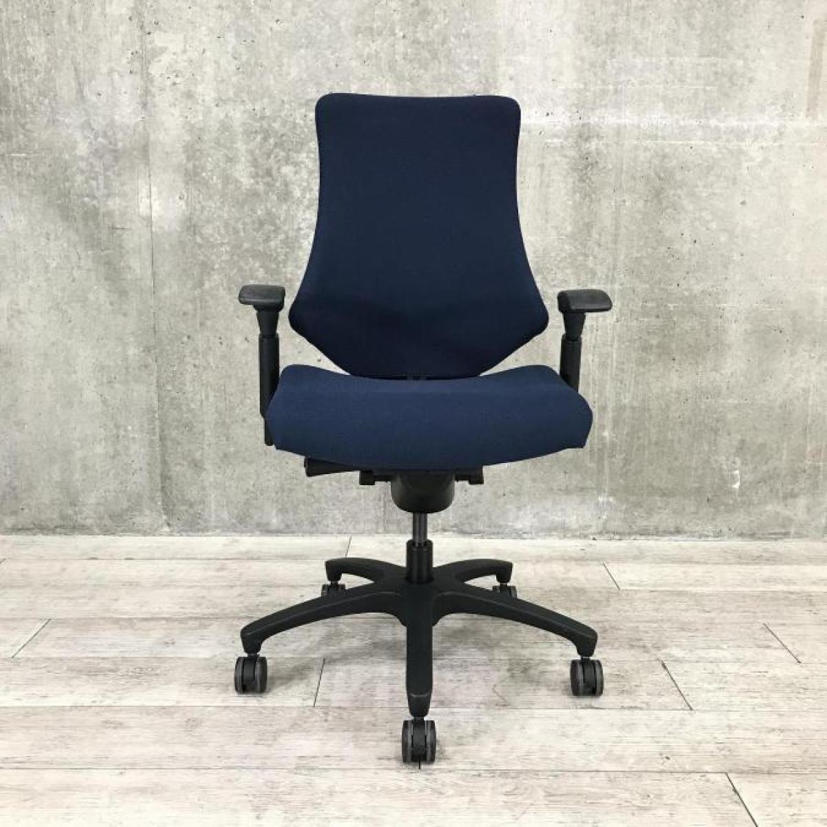 【包み込まれるフィット感!】 ■イトーキ製 エフチェア 肘付 ネイビーブルー ■デスクワークの疲労を軽減!