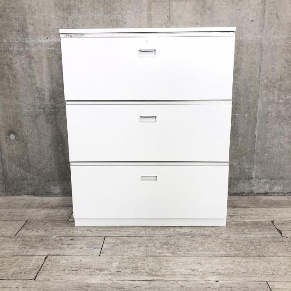 【セール品のため大特価】【A4ファイルも沢山収納可能!ホワイトカラーの人気シリーズ3段ラテラル書庫!】■イトーキ製 シンライン (THIN LINE) 3段ラテラル書庫 ローキャビネット ■ホワイト ■シリンダー錠 ■取っ手部分日焼けアリ【2501】弊社使用欄【A00994225】