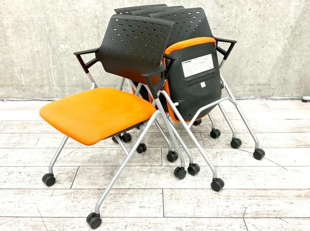 【在庫入替セール品】【定価約5万円】【肘付きで長時間の会議も安心の座り心地】【背もたれクッション無しモデル】■コクヨ ピエガ ネスティングチェア ■オレンジ