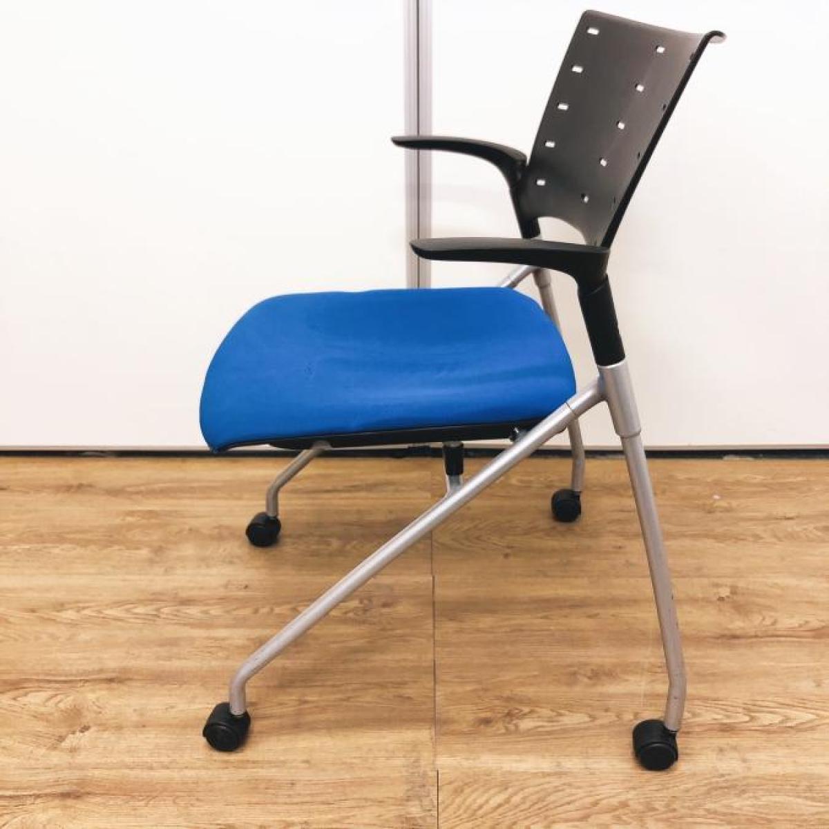 【キャスター付でスイスイ動かせる!省スペースで収納可能!会議や研修にオススメ!】■イトーキ製 マノス(MANOSS) ネスティングチェア 背面パッド無し ■ストロングブルー ■オフィスバスターズ東大阪店 【W】