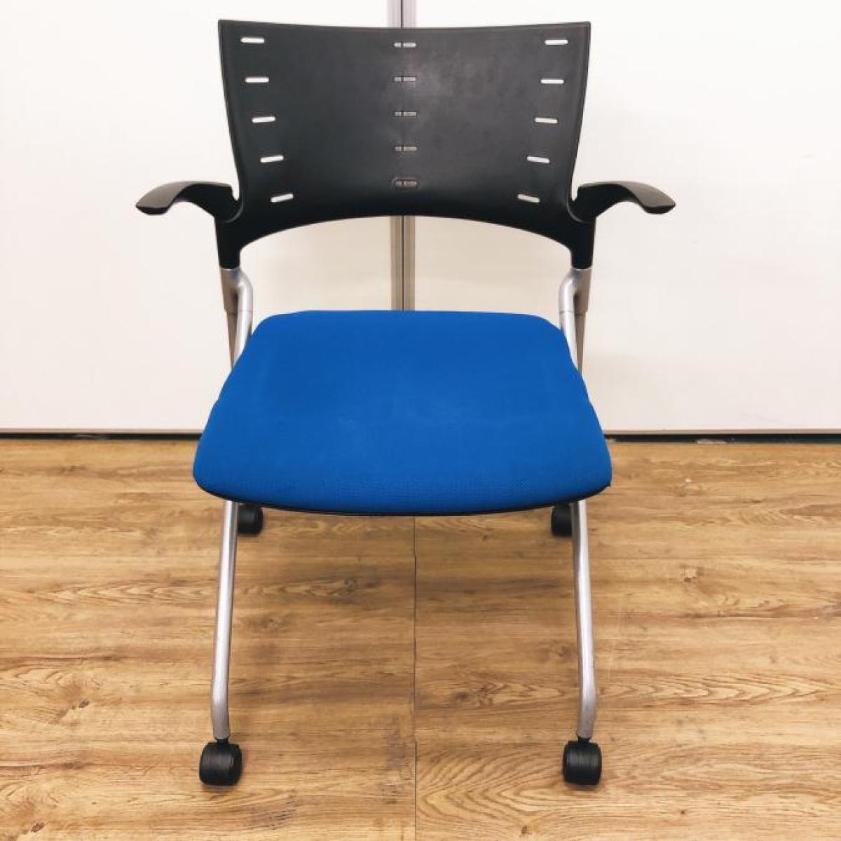 【関東倉庫在庫品】【フレキシブルに使える!平行ネスティングで省スペース化!】■イトーキ(ITOKI)製 マノス(MANOSS) ネスティングチェア ミーティングチェア ■背パッド付 ■キャスター付 ■ブルー【弊社使用欄:A01014525】【ECBMC】