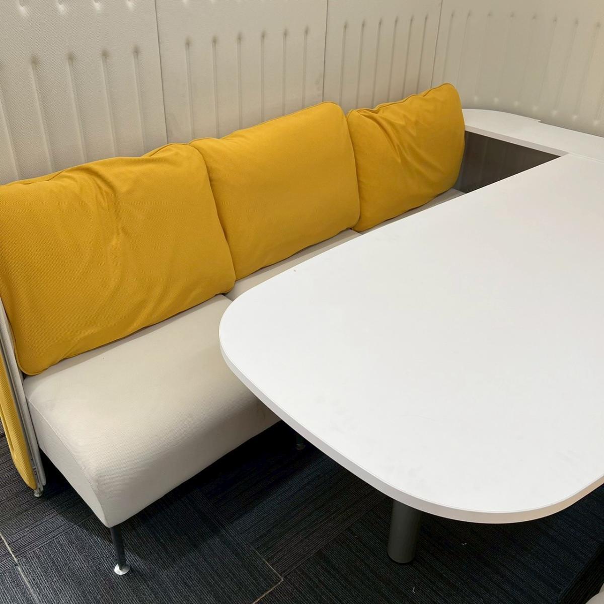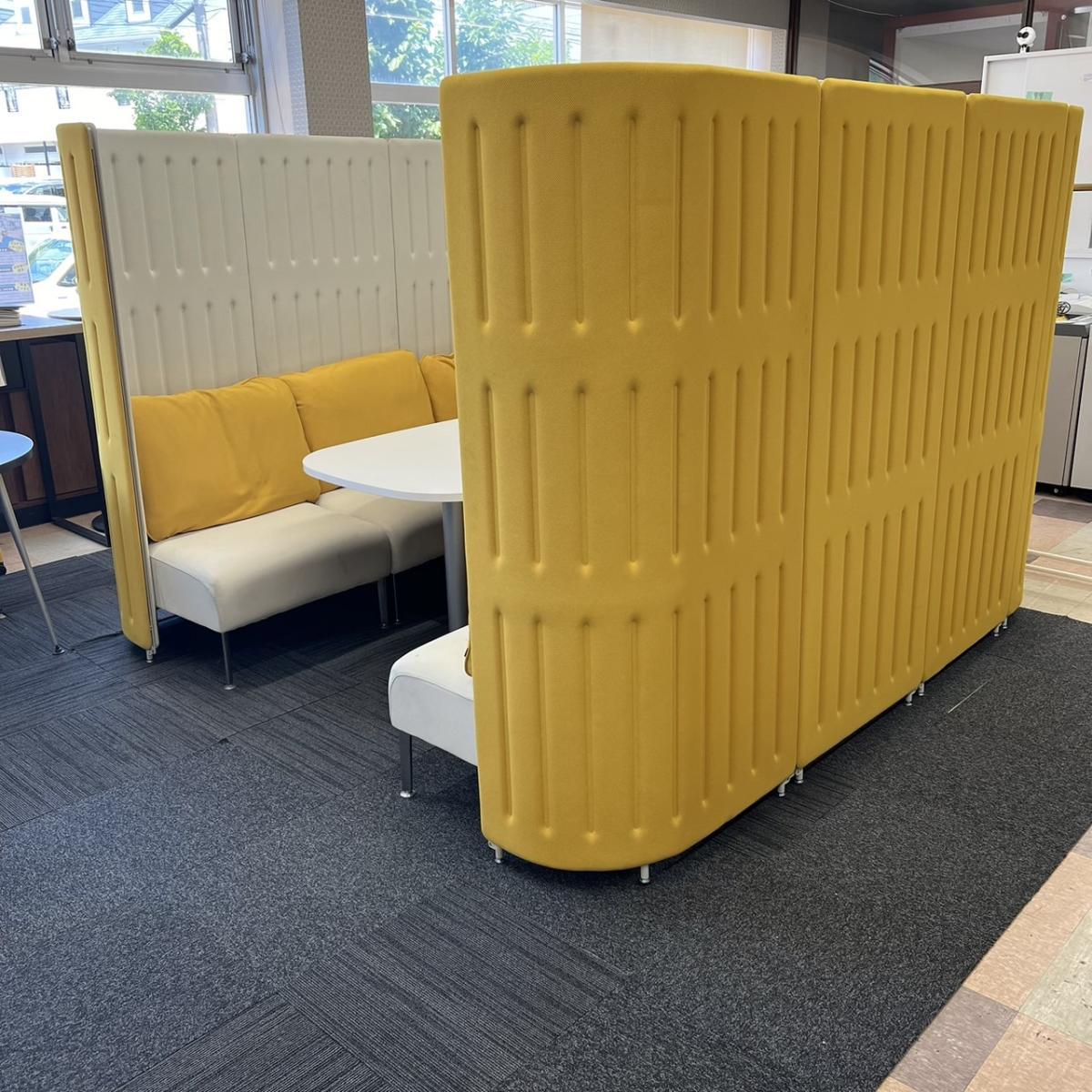 【南】★新品定価:200万円以上 ★《9-10月 在庫入替セール品 26/③》オカムラ製の【ファミレスブース/マッフル/イエロー】が値下げされました! *熊本市で、中古オフィス用品・オフィス家具をお探しなら「オフィスバスターズ熊本サテライト店」へ*※サテライトは商談スペースのみの為、在庫は福岡の在庫を掲載しております。商品につきましてはお電話にてお問い合わせください。*- 熊本サテライト