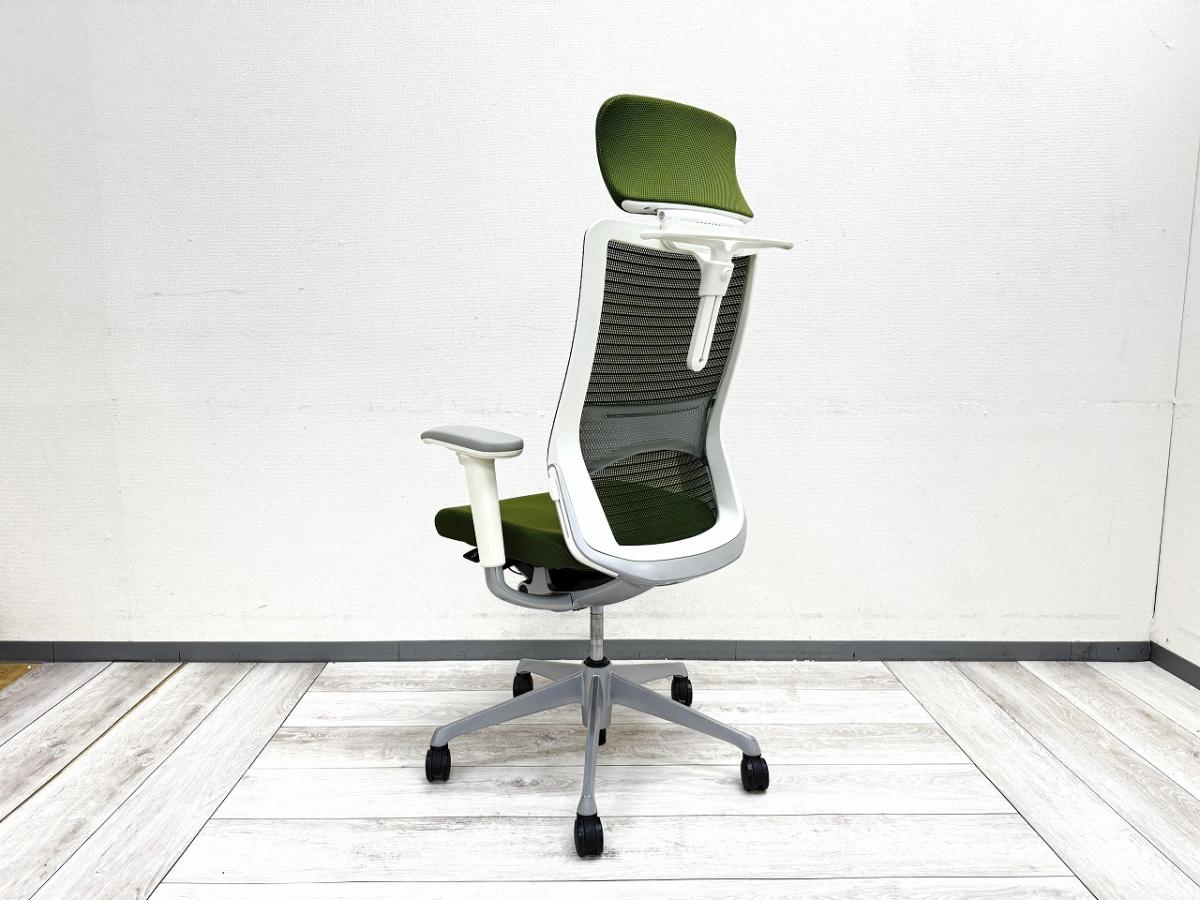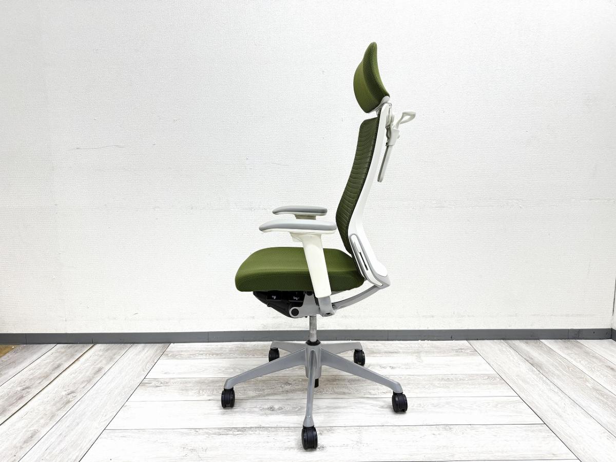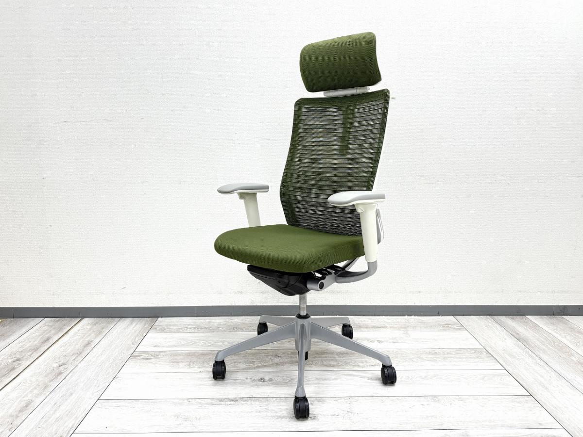 【ヘッドレスト付きならコレ!厚めのクッションで快適な座り心地を実現!】■オカムラ(okamura)製 コーラル(choral)チェア ■エクストラハイバック ■ヘッドレスト付き ■背メッシュ ■グリーン ■デザインアーム〈岐阜・愛知・三重・静岡・福井〉- 岐阜店