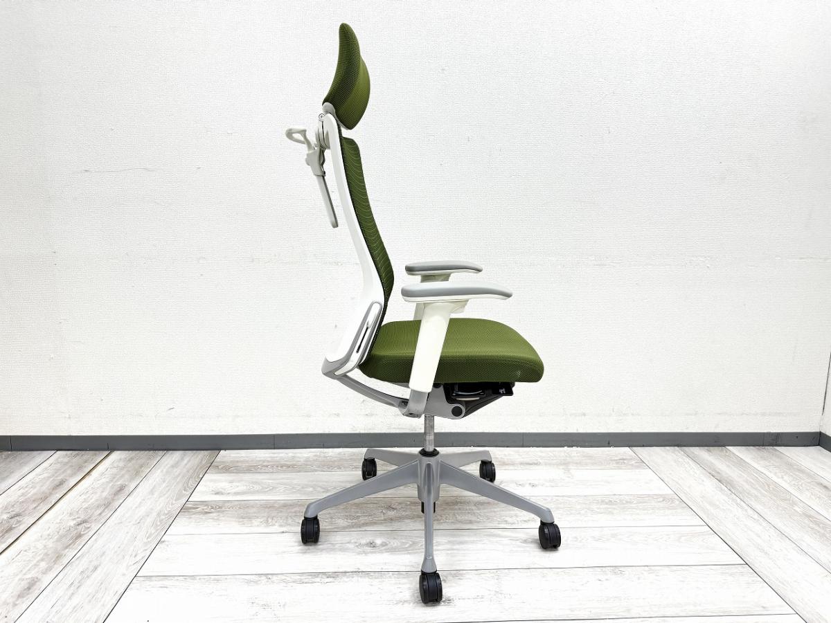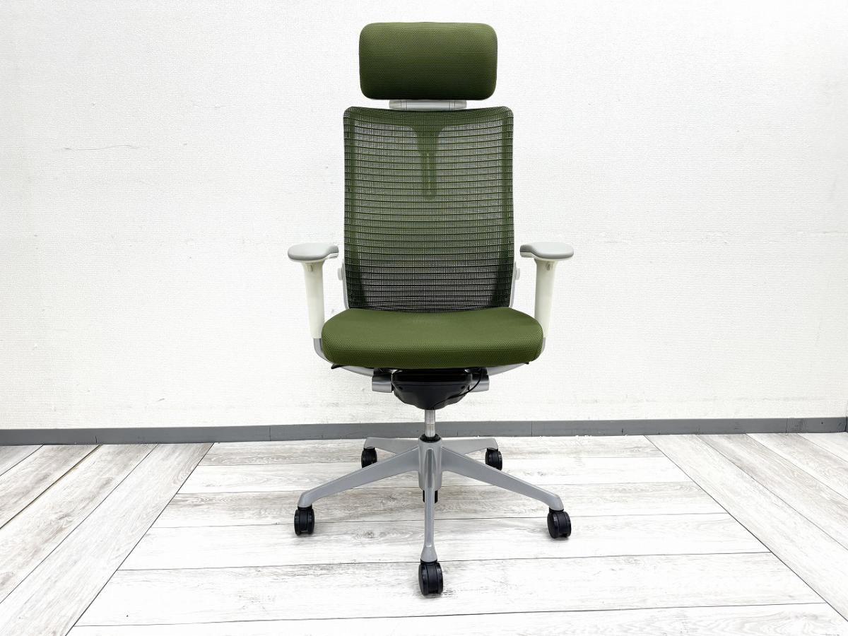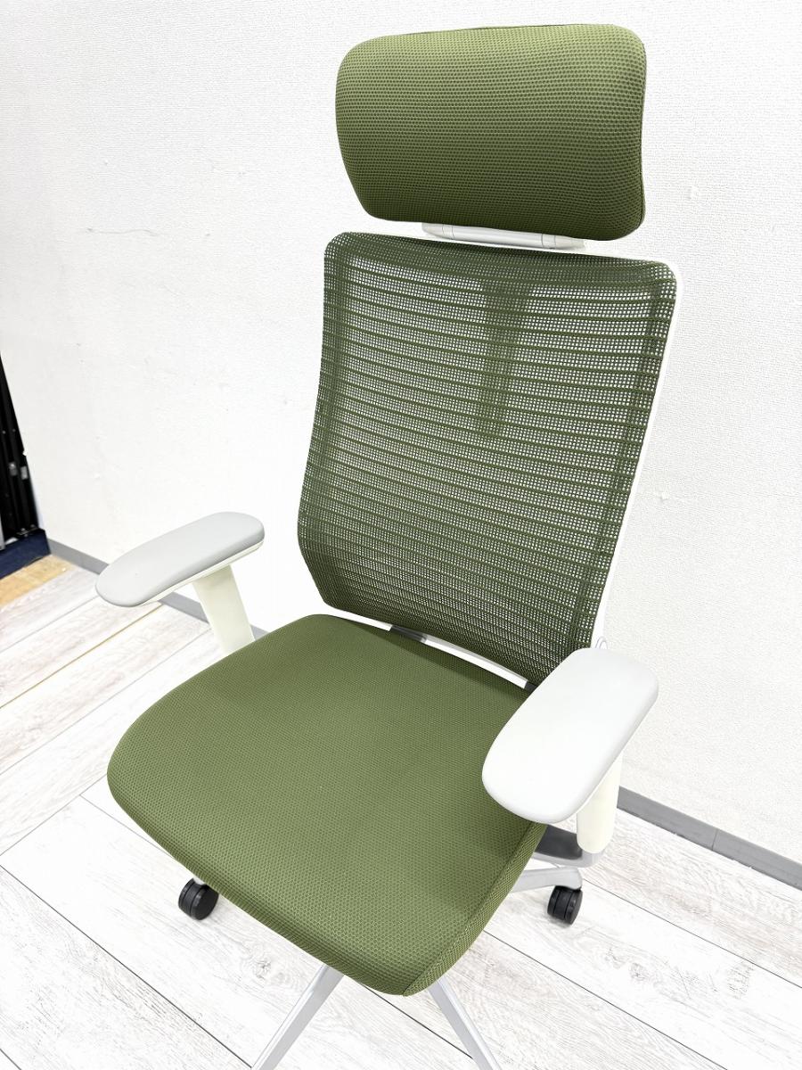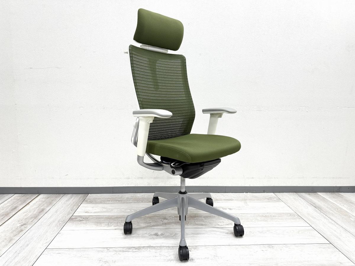 【ヘッドレスト付きならコレ!厚めのクッションで快適な座り心地を実現!】■オカムラ(okamura)製 コーラル(choral)チェア ■エクストラハイバック ■ヘッドレスト付き ■背メッシュ ■グリーン ■デザインアーム〈岐阜・愛知・三重・静岡・福井〉- 岐阜店