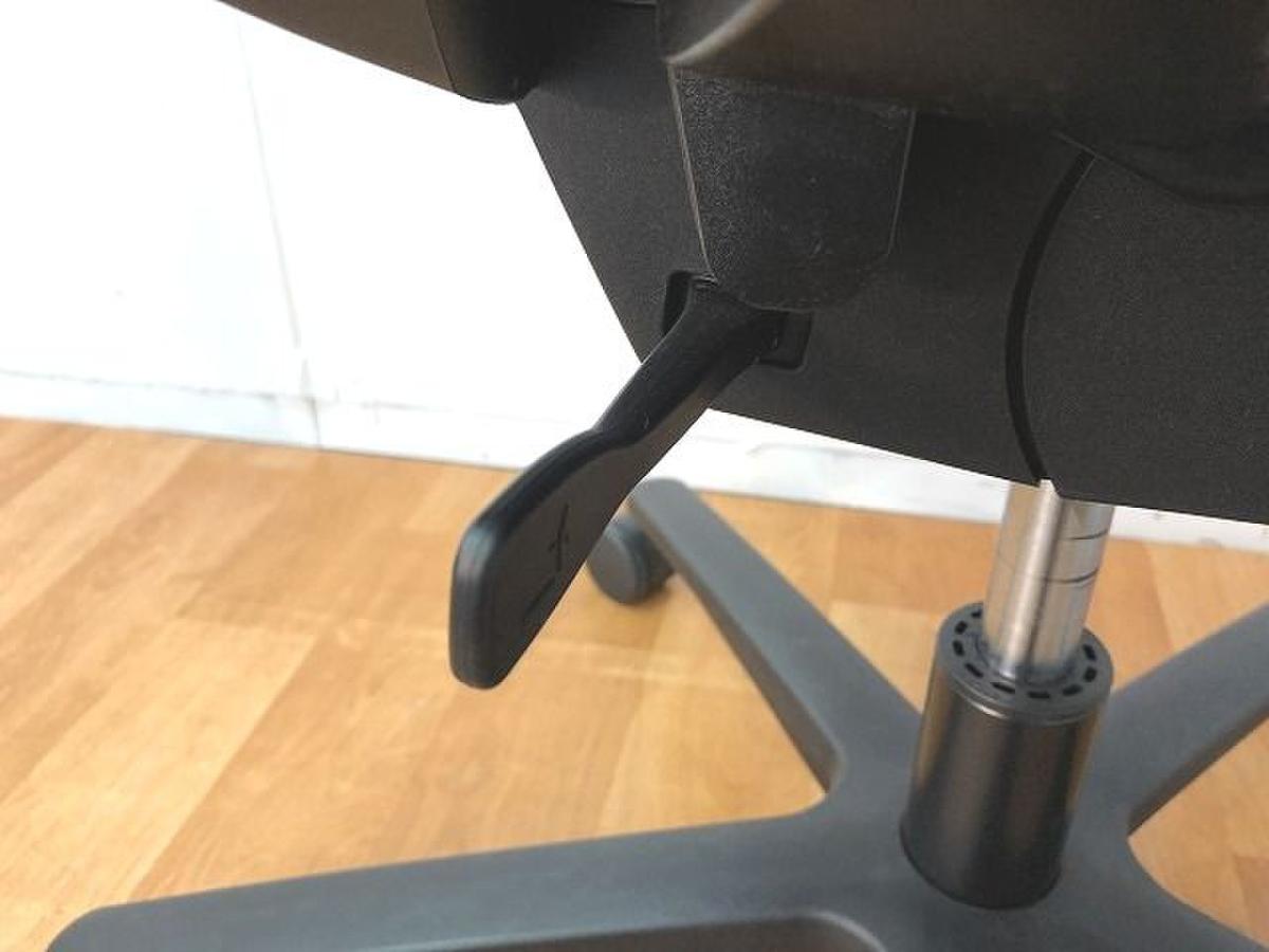 (ファブリック) - レバーを上下させることで、内蔵されたランバーサポートプレートの押し出し量を2段階(15㎜)切り替えることができます。