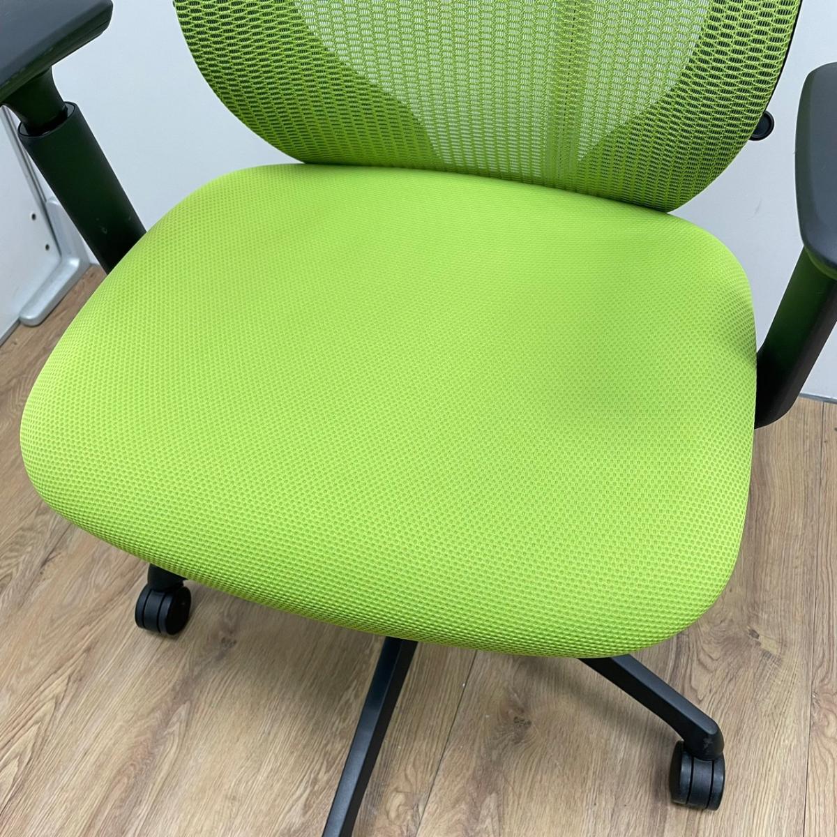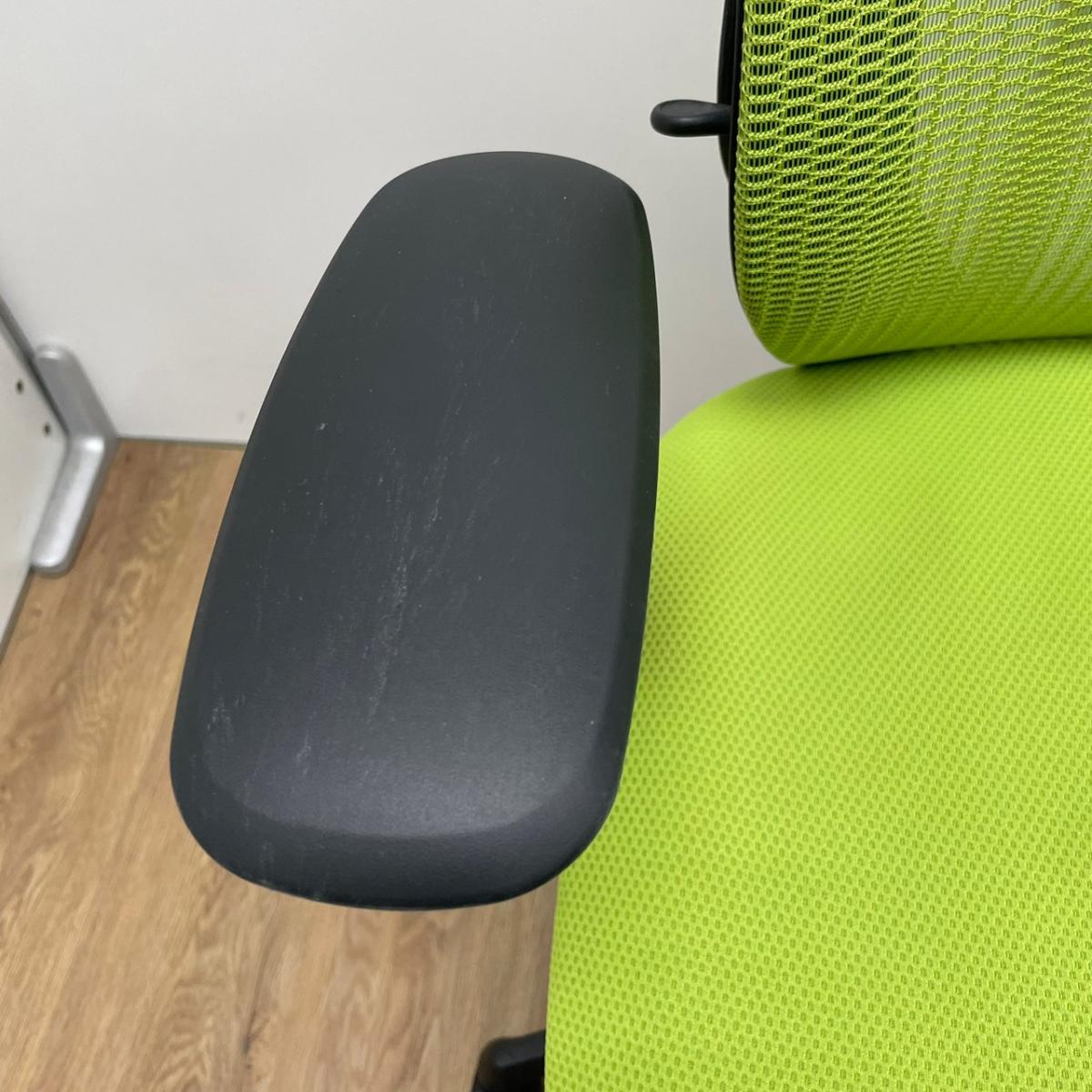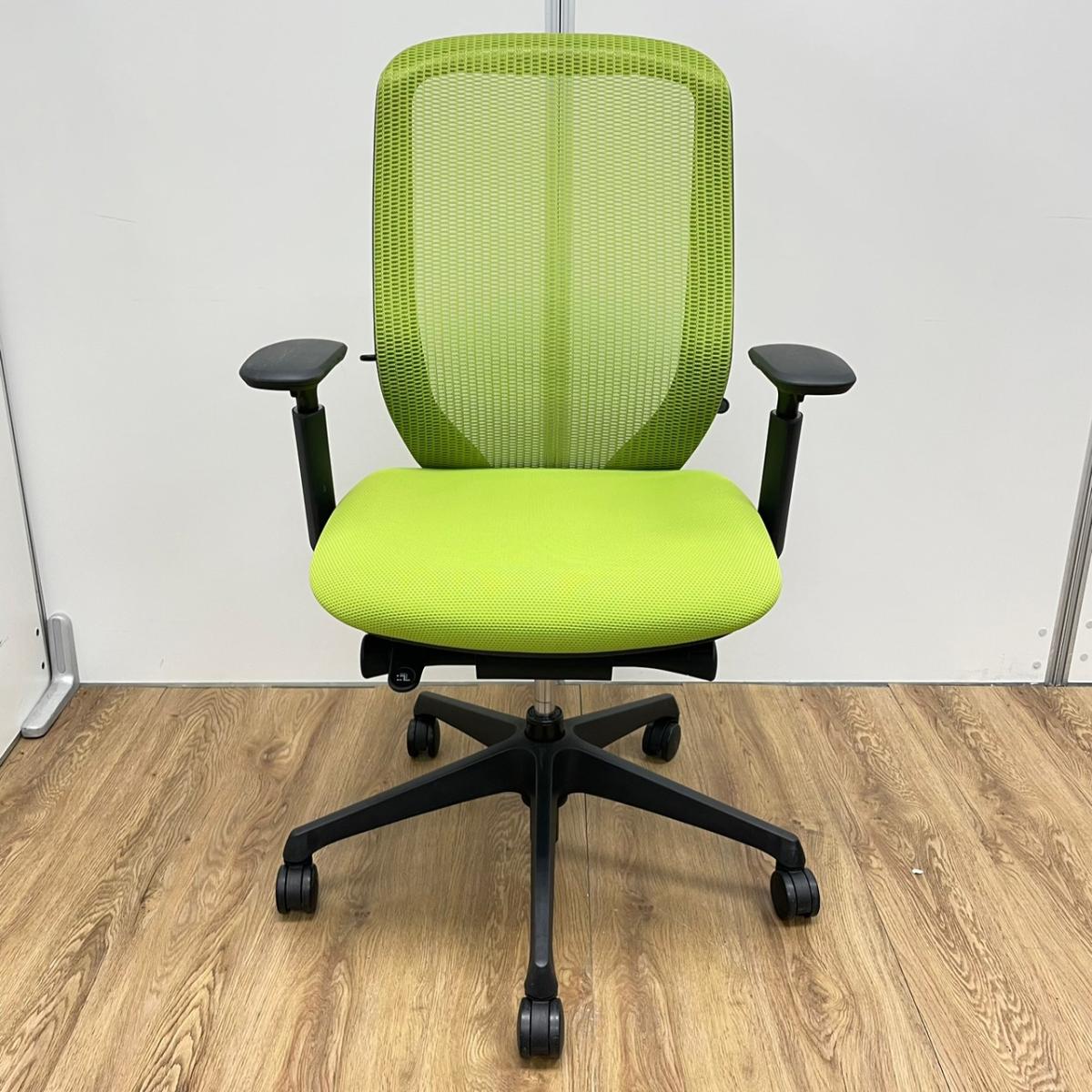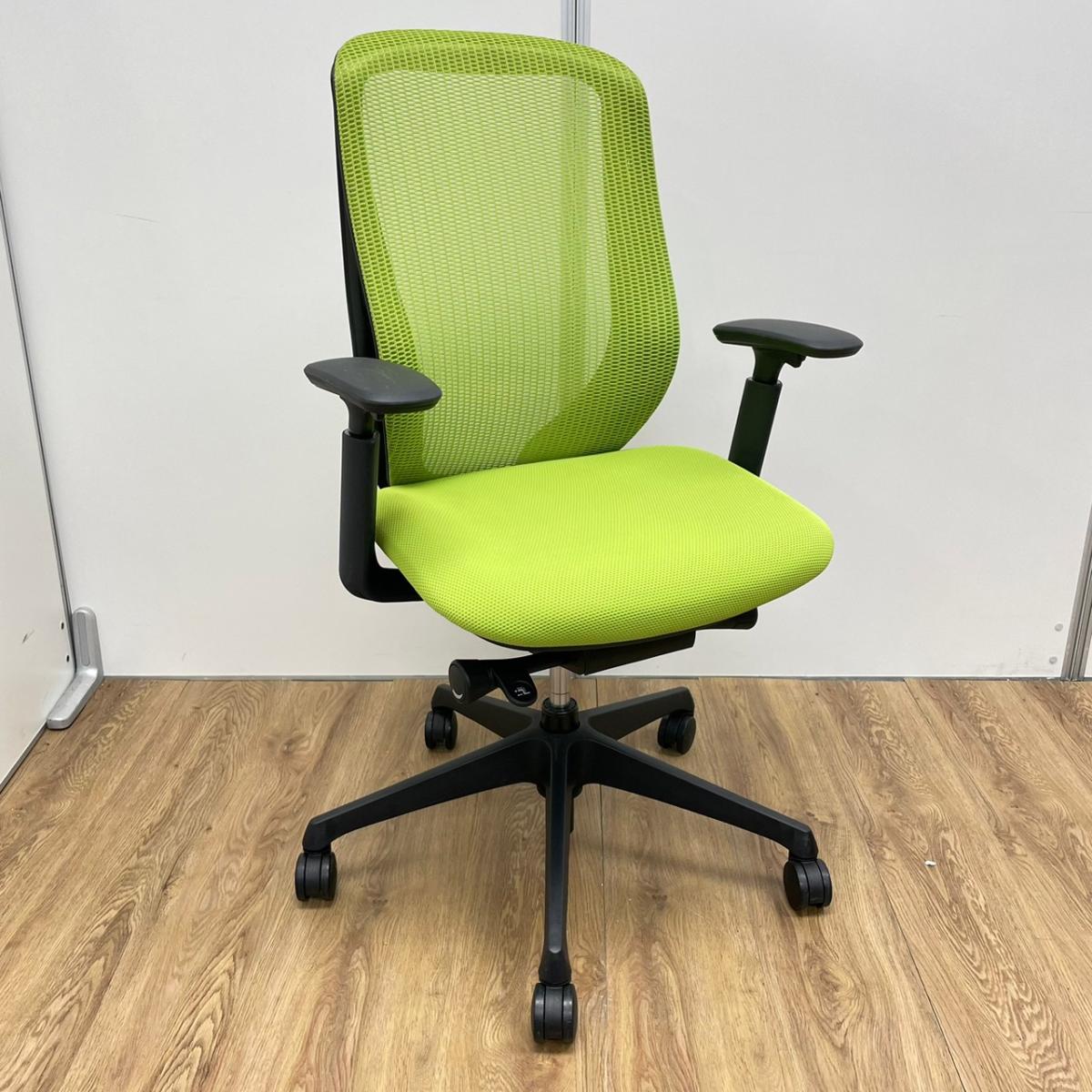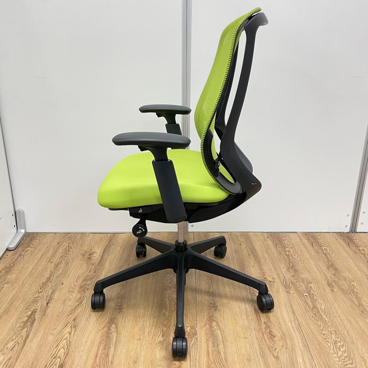【前傾チルト機能付き!オカムラ製品で最も人気を集める高機能メッシュチェア!】■オカムラ(okamura)製 シルフィ(Sylphy)チェア ハイバック 肘付き ■可動肘 ■ライムグリーン × ホワイトシェル【状態良好品!】