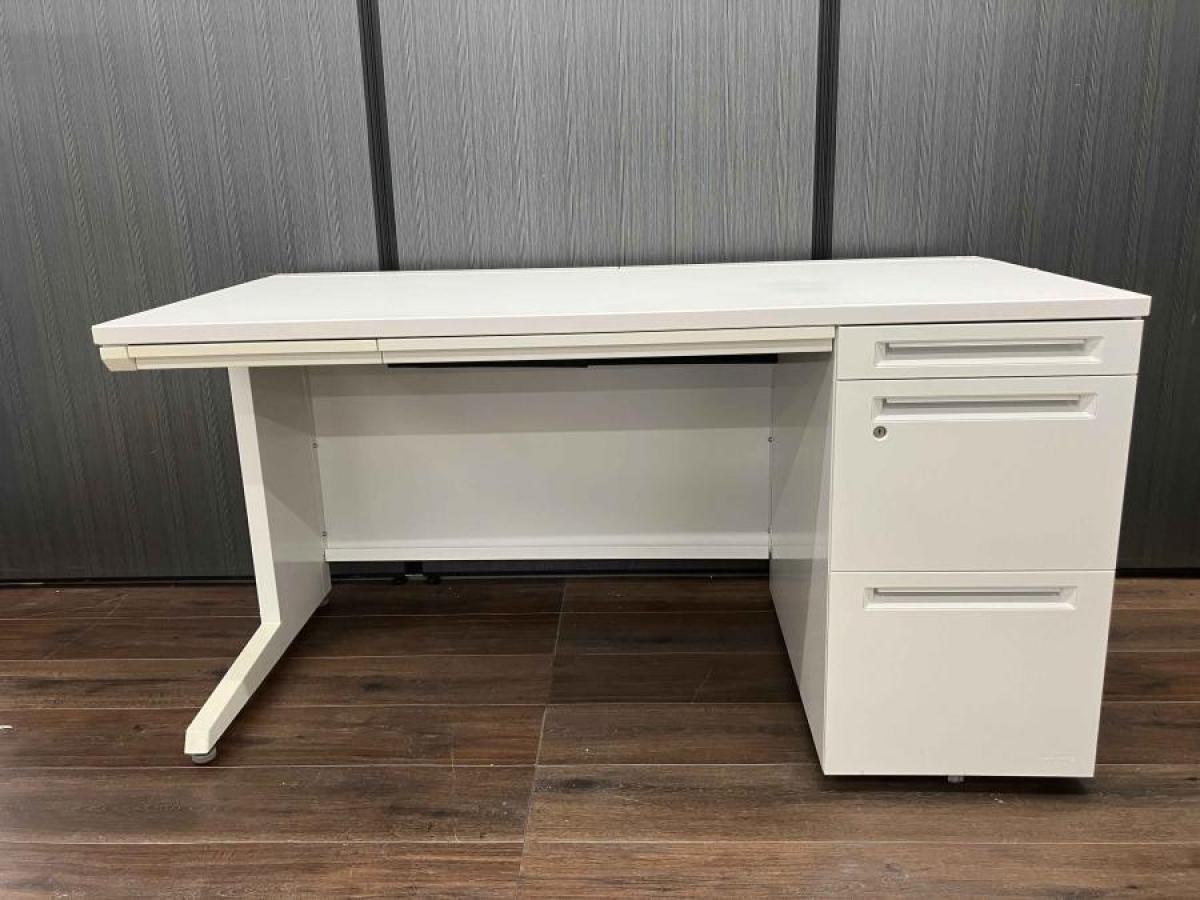 【セットでお買い得!横幅1400の平机と3段ワゴン!疑似片袖机】 オカムラ アドバンス ホワイト 引き出し付き ネオホワイト【収納が欲しいかたにはオススメ】