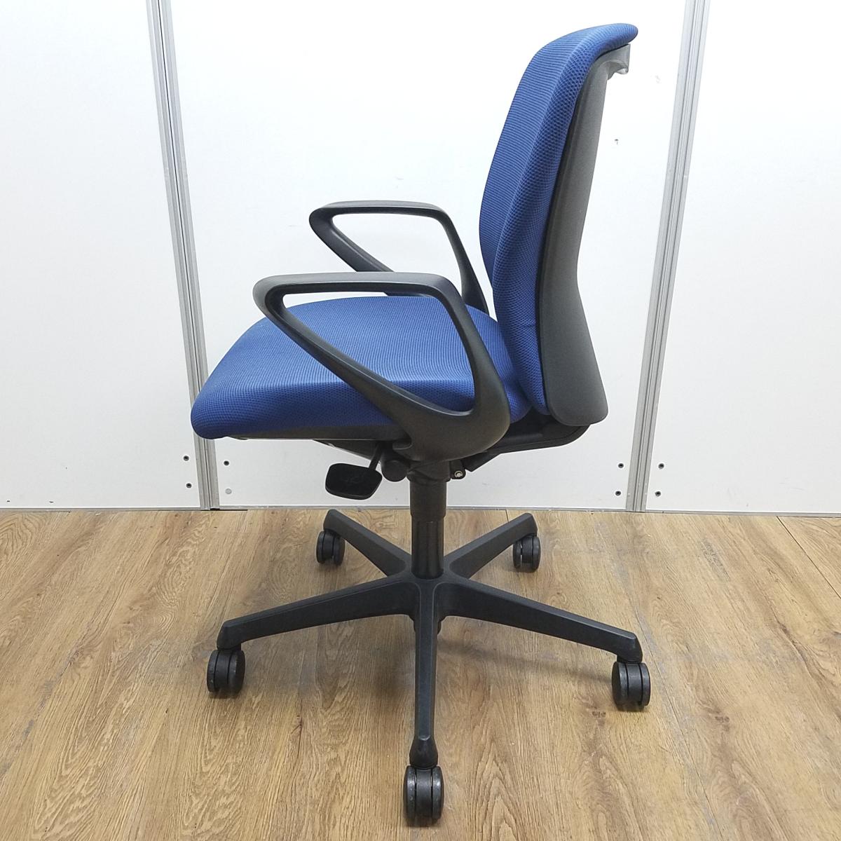 オカムラ製 スラート ミディアムブルー ブラックフレーム ローバック 肘付き デザインアーム※固定肘 シンプルなデザインと厚みのあるクッションが大人気! 機能充実のワーキングチェア! 肘付きローバックチェア!!- 京都東寺店