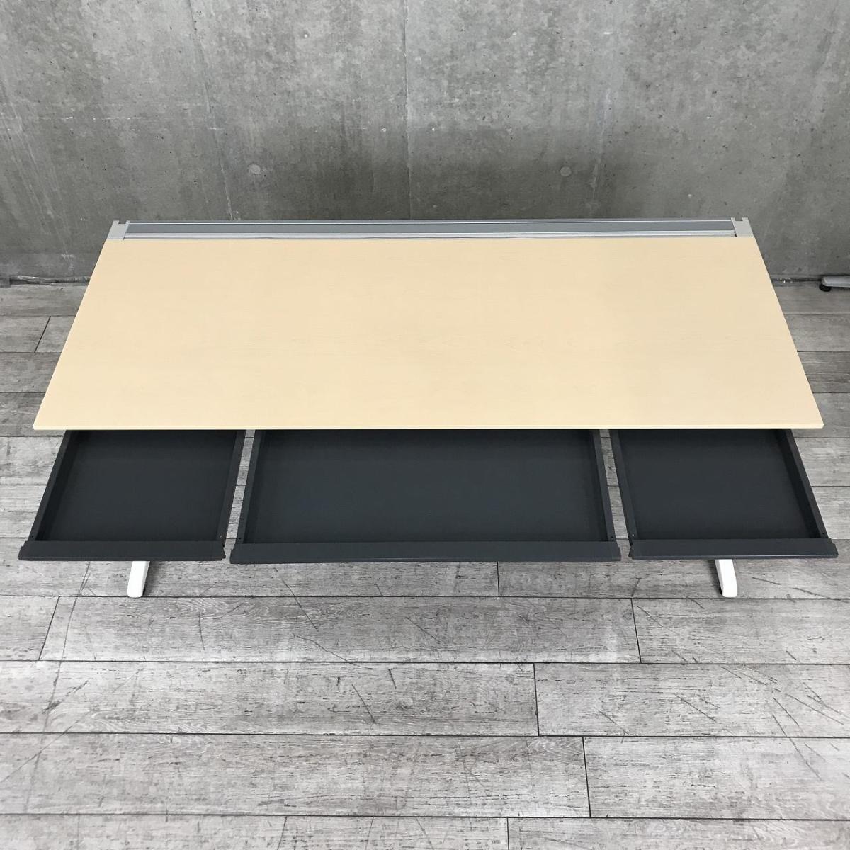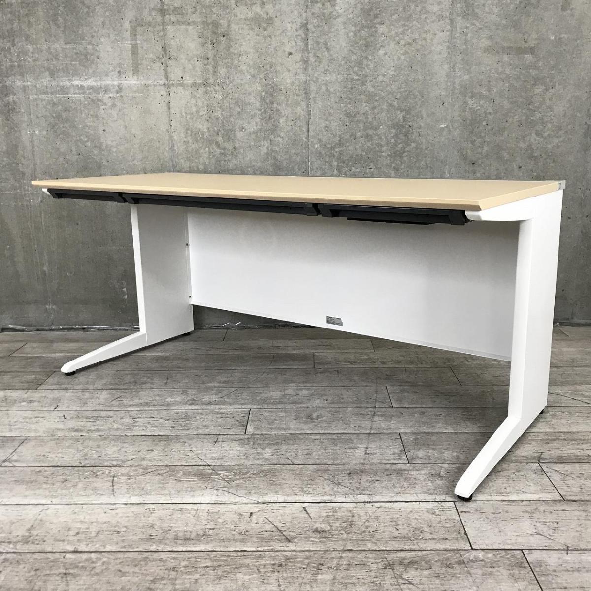 【在庫入替セール品!】ゆとりのあるワークスペースで作業効率アップ!使いやすさを追究したW1600㎜デスク! ■クロガネ/ナチュラル 平デスク W1600×D700×H720mm 引出し付 ■天板:木目カラー×本体ホワイト- 立川・八王子店
