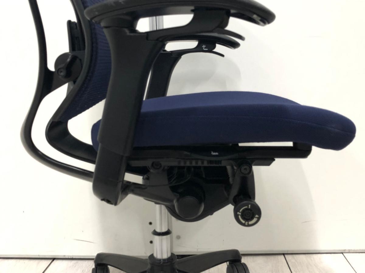 【オカムラ製の最高級チェアが残り1脚限りです!!】オフィスバスターズ 東大阪店 オカムラ製 コンテッサ シリーズ ダークブルー アジャストアーム※可動肘 背/座面メッシュ ランバー 世界で認められた革新的タスクチェア!人間工学に基づいた快適な座り心地を実現! 肘付きハイバックチェア!! 中古 外部倉庫品