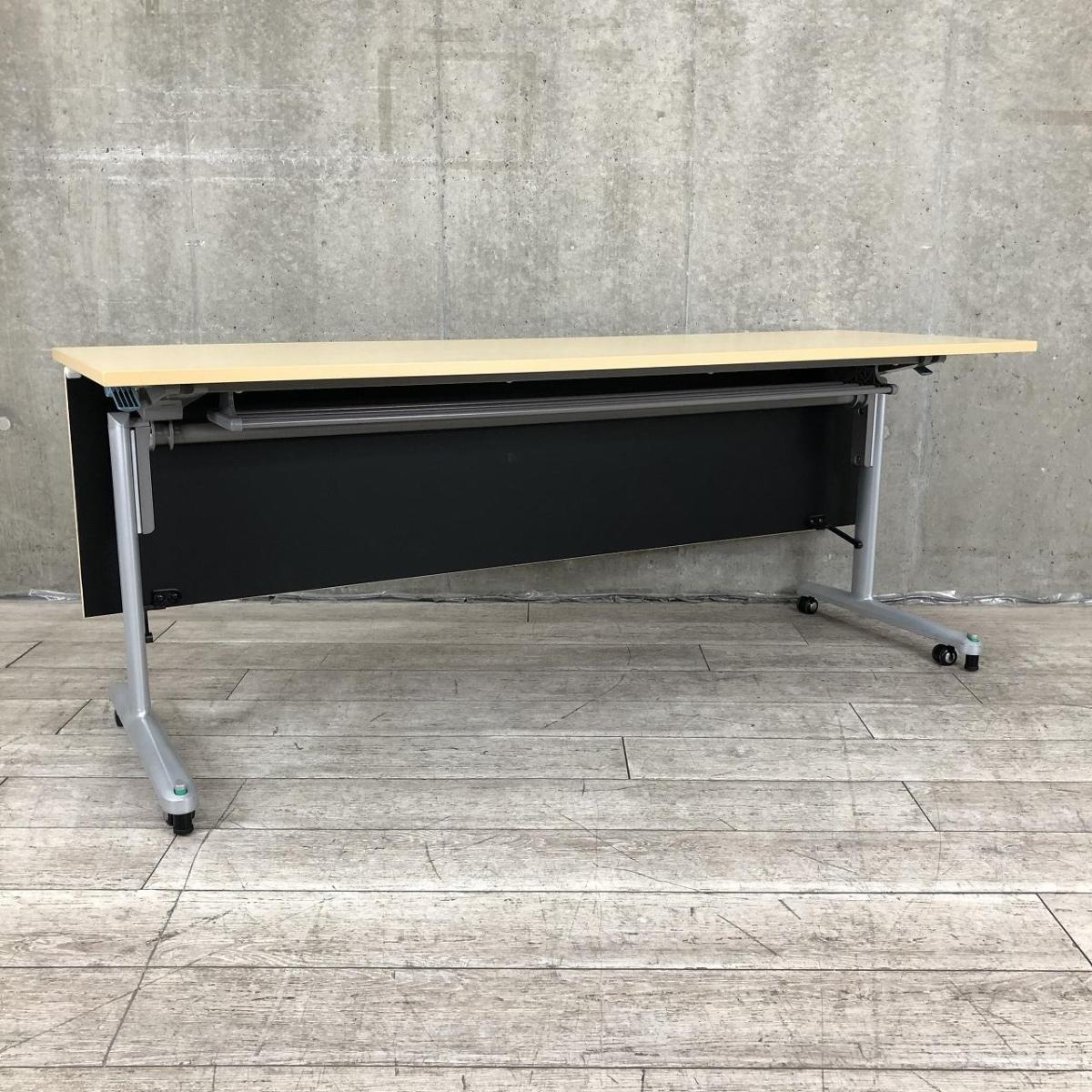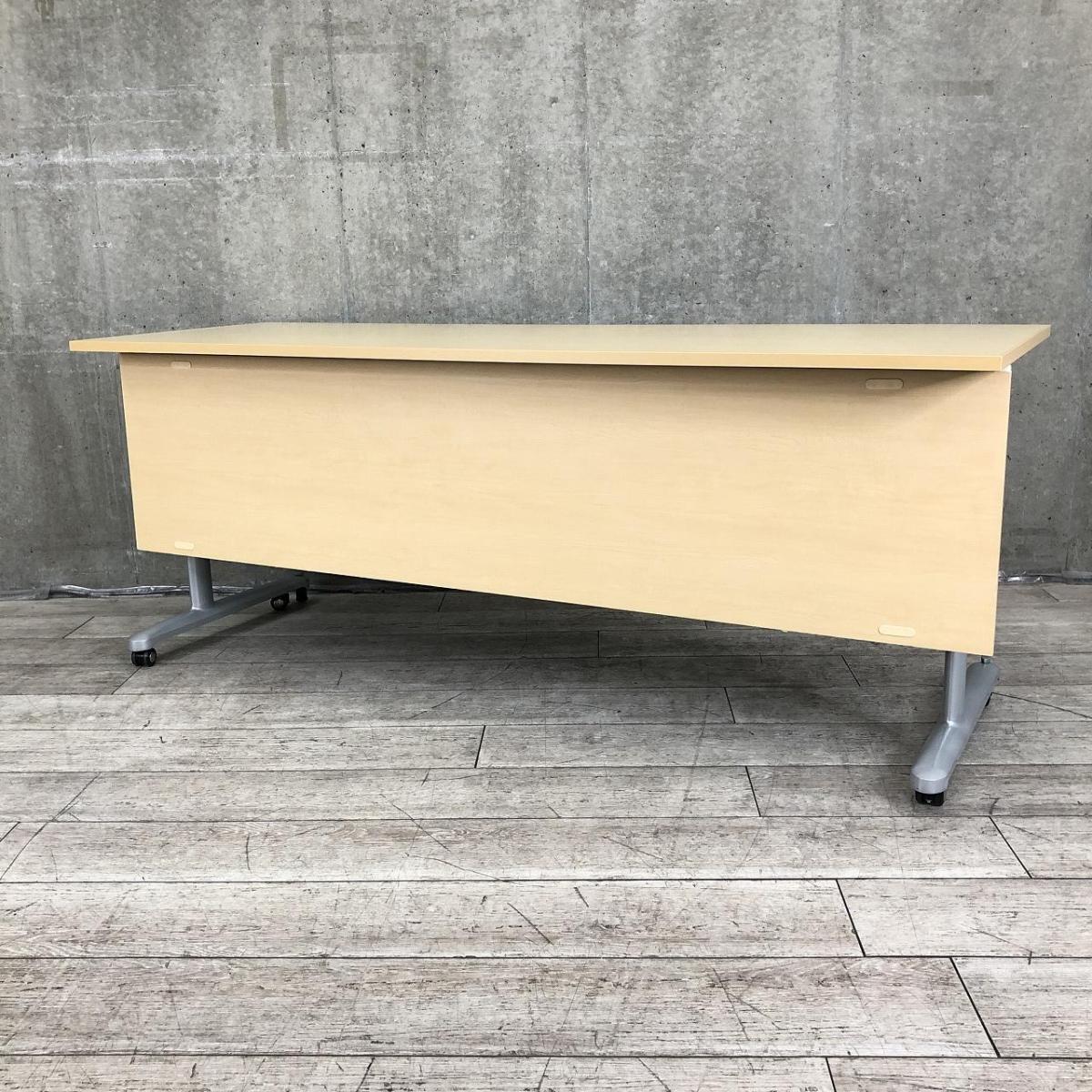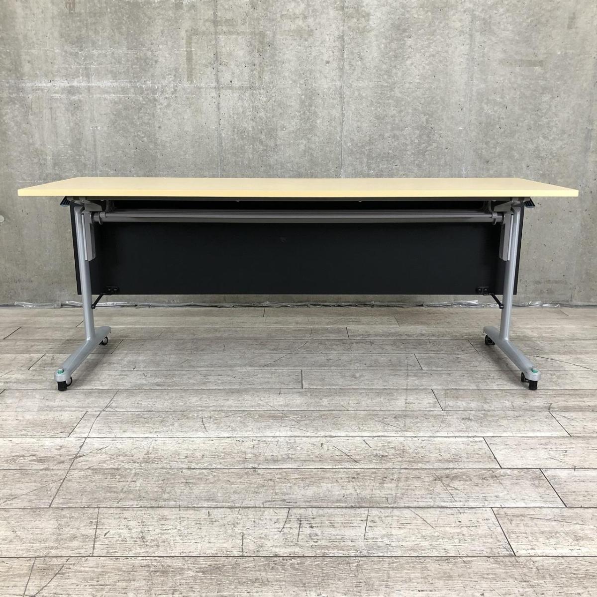 【キャスター付で移動がラクラク!フレキシブルにご利用頂けます!】■イトーキ製 サイドスタックテーブル W1800×D600×H700mm 幕板付き ナチュラル木目カラー【折り畳みテーブル!】- 川崎店