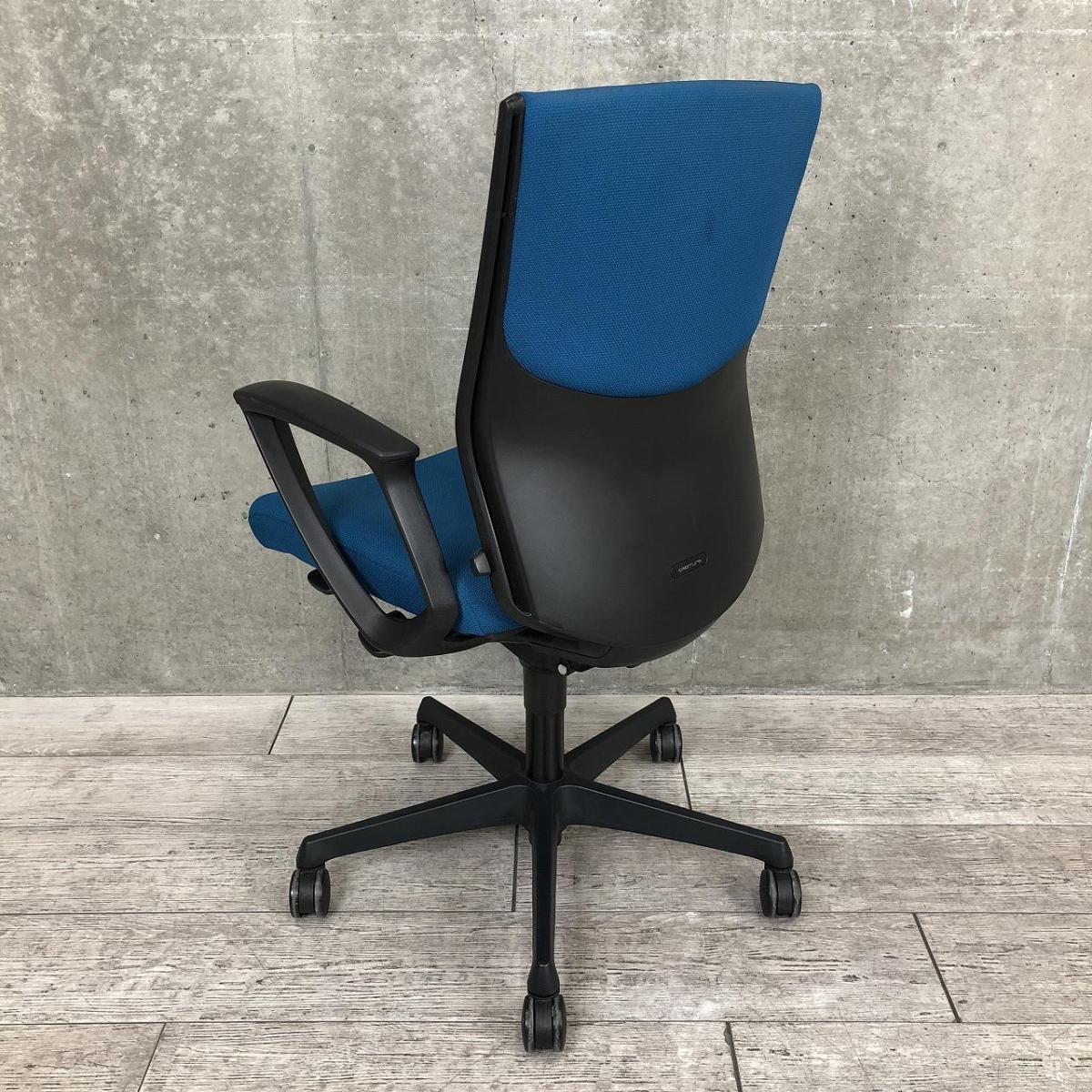 【長時間のデスクワークもランバーが快適にサポート!オフィスの定番チェア!起業や入替に!】■オカムラ(okamura)製 エスクードチェア (ESCUDO) 肘付き ハイバックチェア ■サークル肘 ■ブルー ■ランバー付 ■- 岐阜店