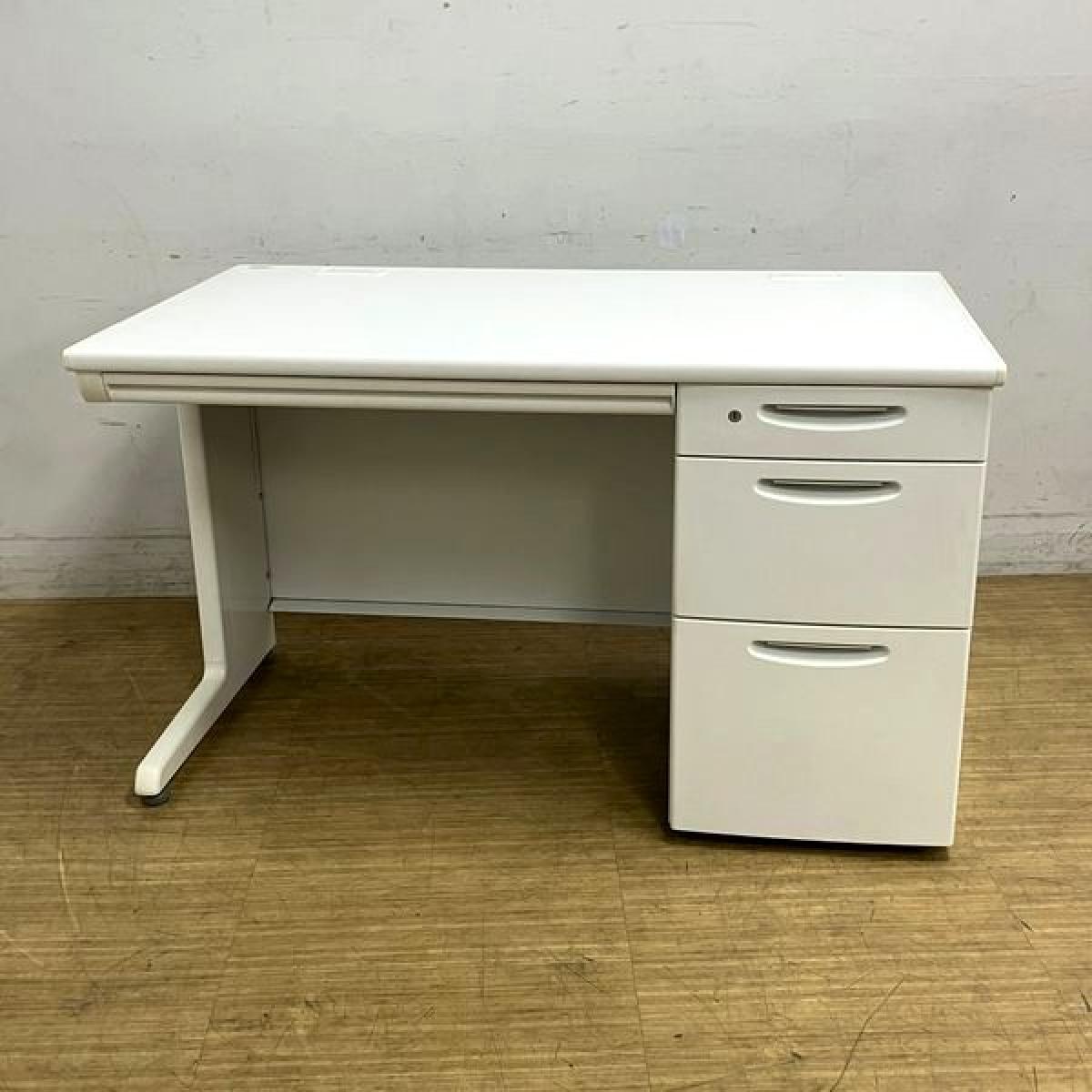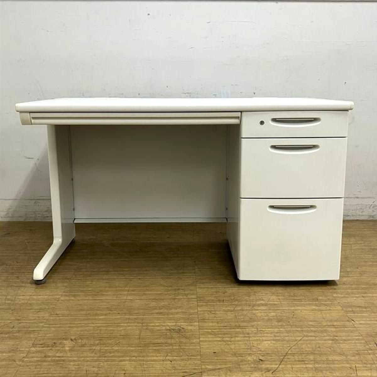 【在庫入替セール】オカムラ SD-V 片袖机 定番のW1200サイズ ホワイト 鍵付き シリンダー錠 ※サイドの樹脂部分に日焼けあり- 名古屋千種店