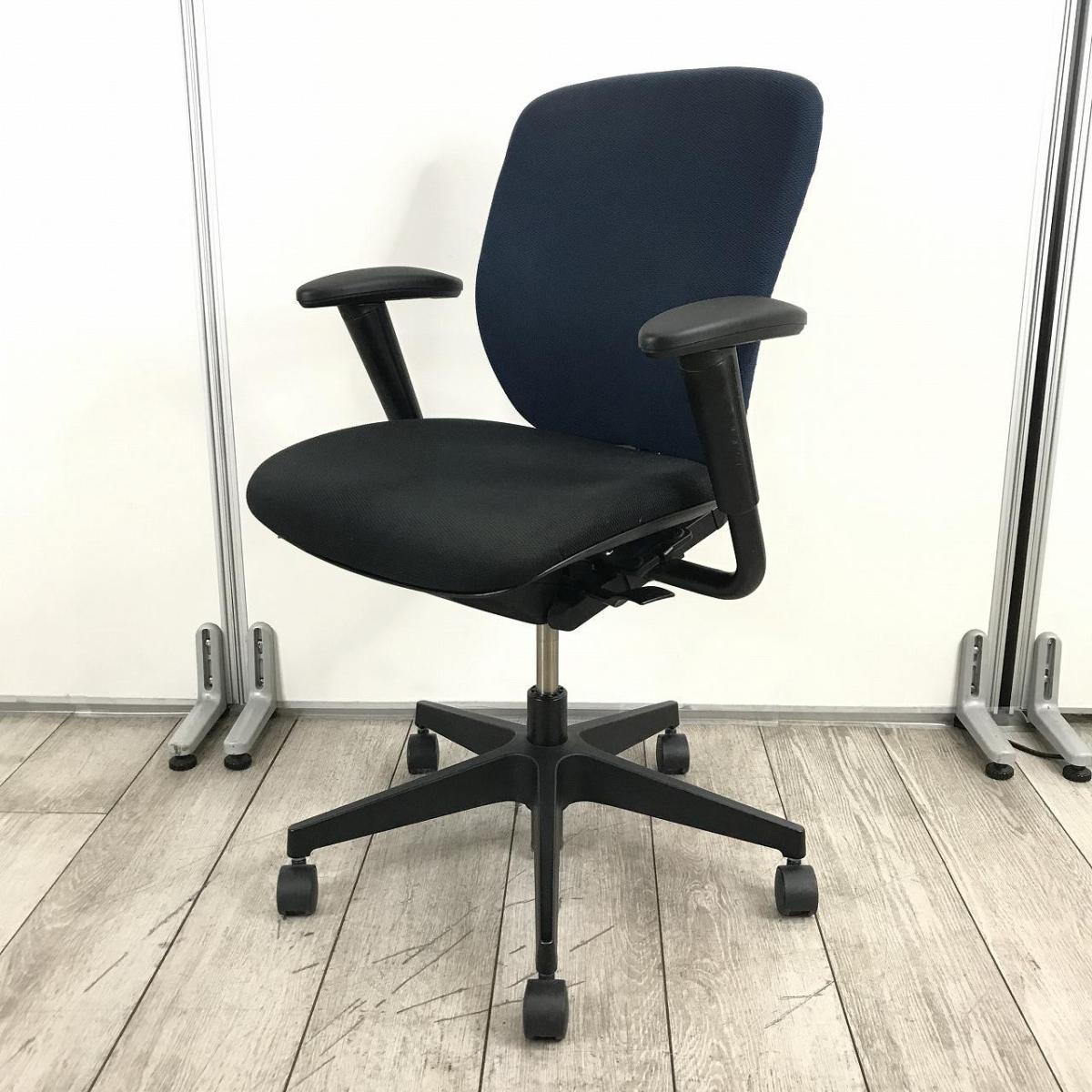 【一人ひとりにマッチする座り心地!ミドルクラスの定番チェア!】■イトーキ(ITOKI) プラオ(PRAO) 肘付き ローバック ■可動肘 ■ランバーサポート付き ■背面ネイビーブルー×座面ブラック- 春日部・越谷店