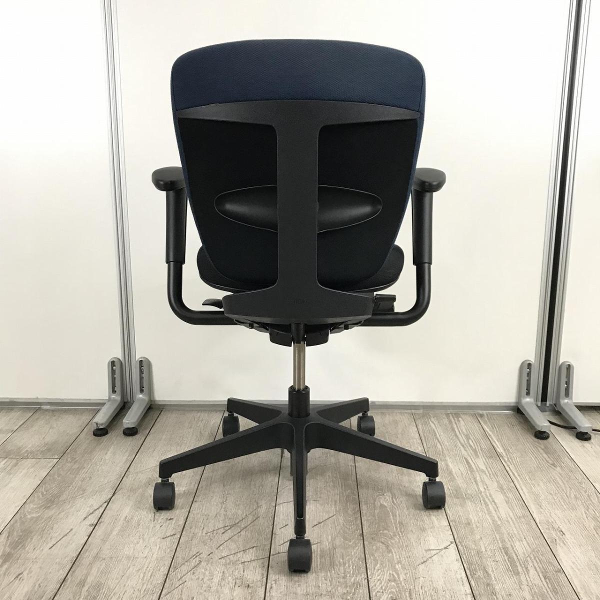 【一人ひとりにマッチする座り心地!姿勢の変化にフレキシブルに対応!】■イトーキ製 プラオ 肘付ローバックチェア ■サークル肘 ■背面ストロングブルーブルー&座面ブラック