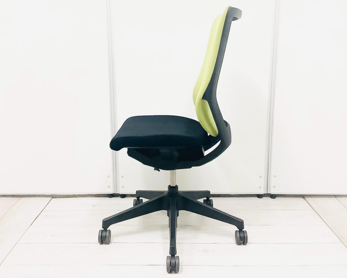 入替セール品につきお値下げ!【カフェ調オフィスにおすすめなグリーンカラーのクッションバックチェア!】イトーキ エピオス 肘無しチェア モスグリーン ブラックフレーム