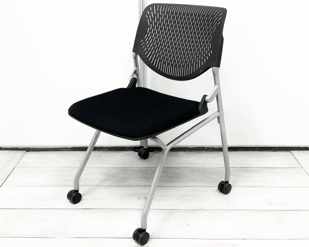 【関東倉庫在庫品】【フレキシブルに使える!便利なネスティングチェア!】■オカムラ(okamura) ルナチェア(RUNA) ネスティングチェア ミーティングチェア 肘無し ■キャスター付 ■背面樹脂メッシュ(ヌードタイプ) ■ブラック 【弊社使用欄:A01015956】【ECBMC】