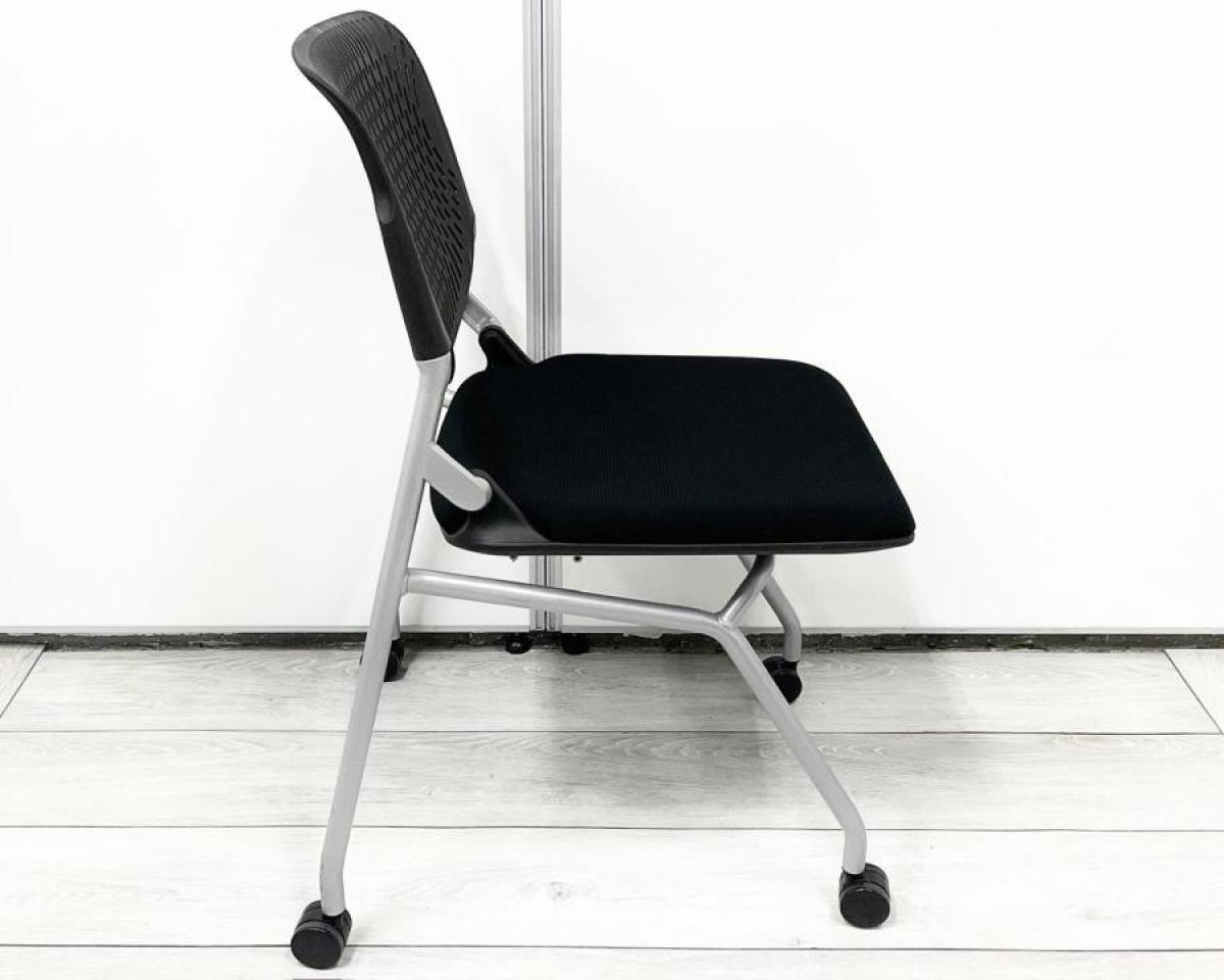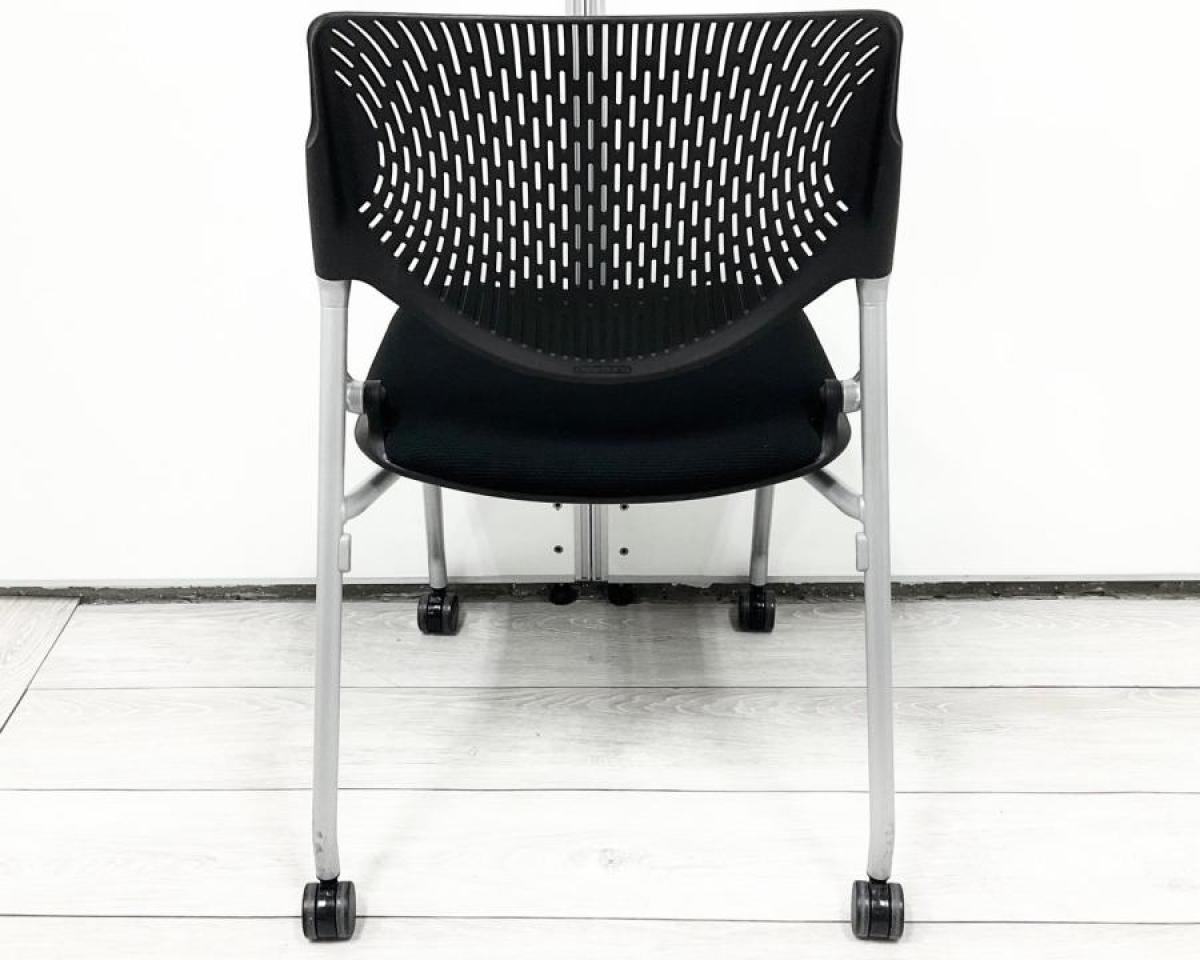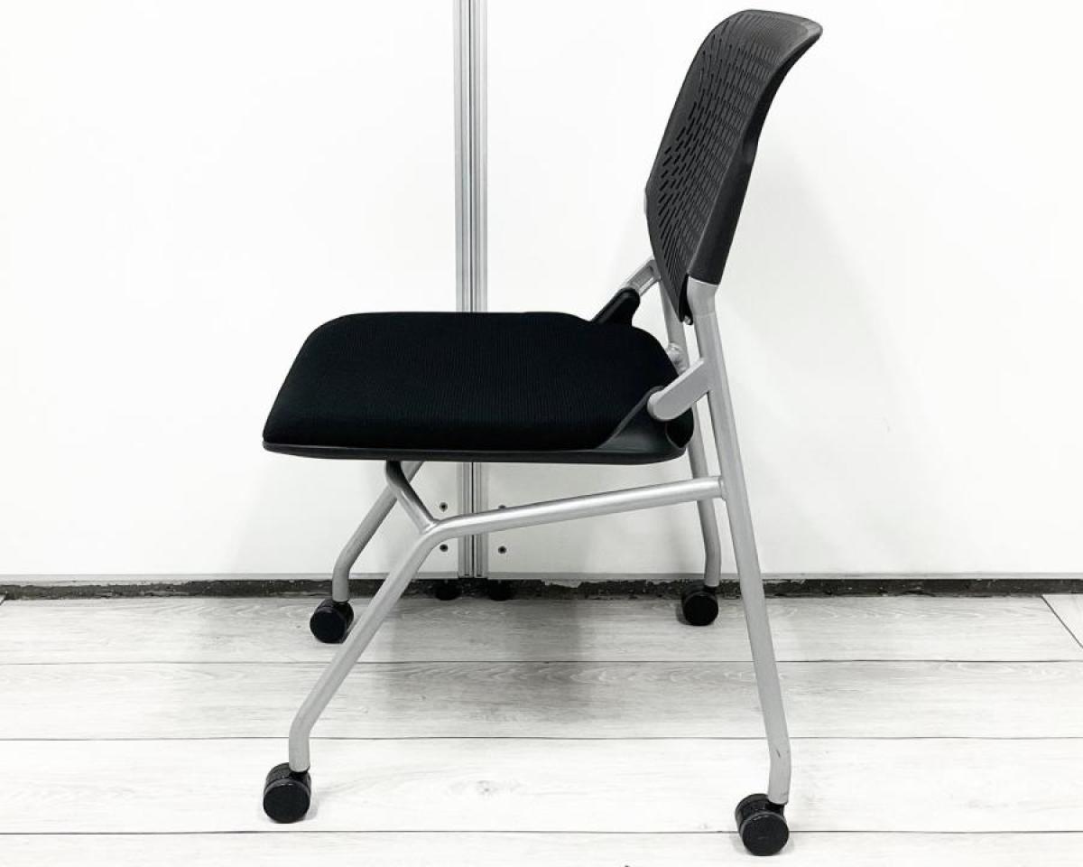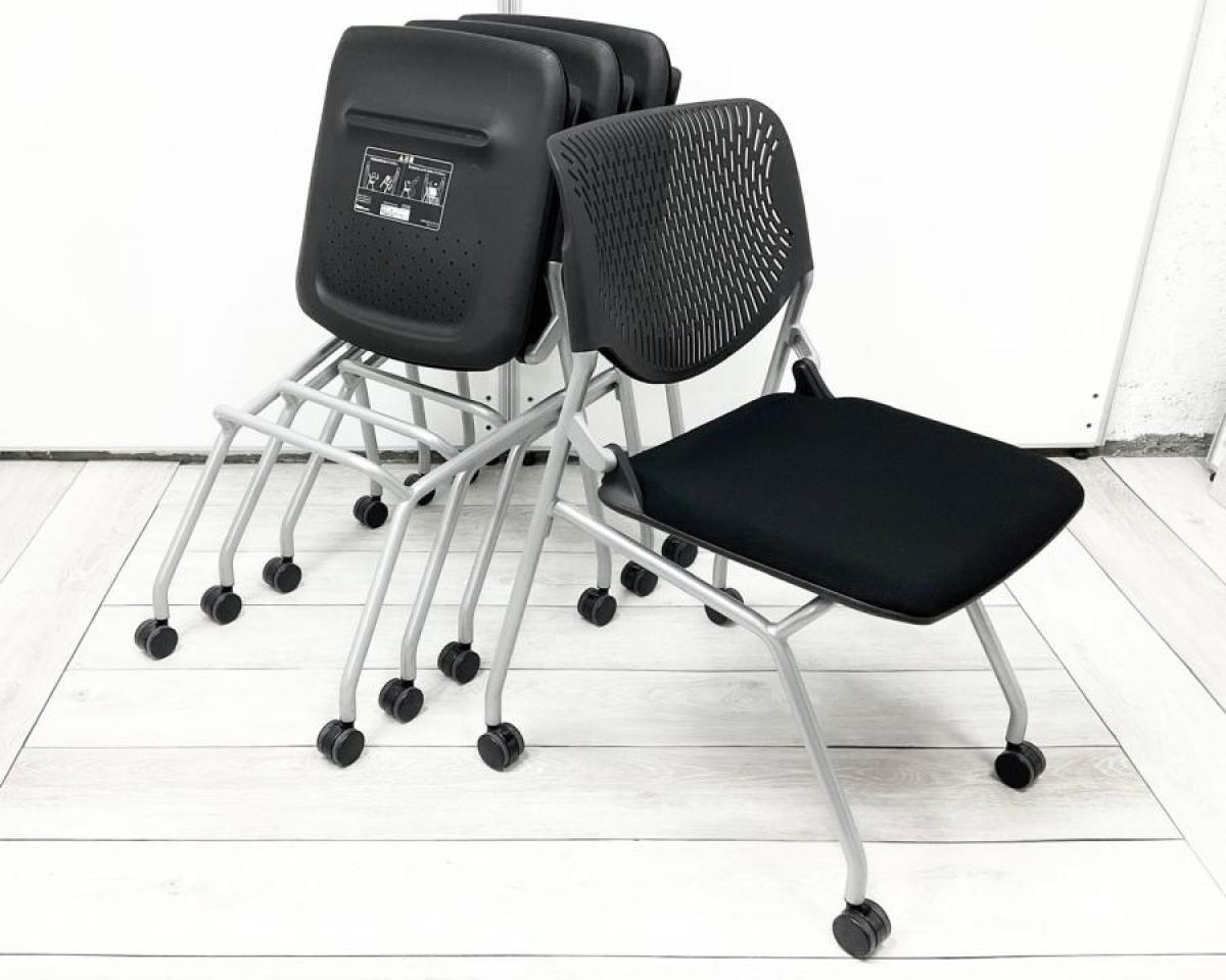 【スタイリッシュなデザインで座りやすい!】■オカムラ(okamura)製 ルナ(Runa)チェア ネスティングチェア ミーティングチェア 会議用 ■背面樹脂メッシュ ■ブラック 【フレキシブルに使える!便利なネスティングチェア!】