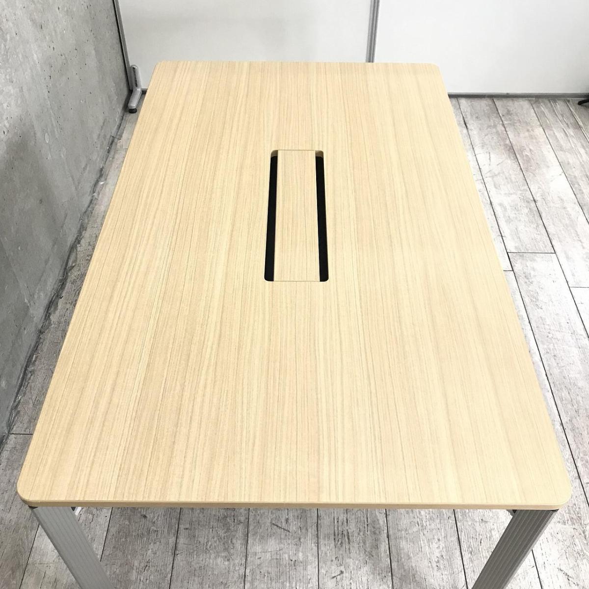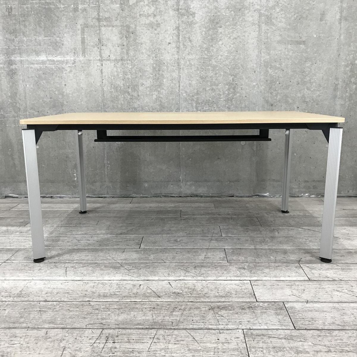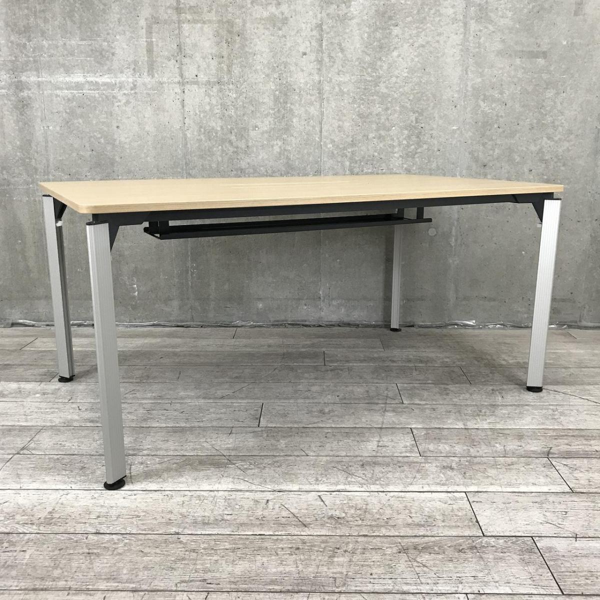 【4名様での会議におすすめ!洗練されたデザインが魅力のミーティングテーブル!】■イトーキ (ITOKI) 製 DEシリーズ ミーティングテーブル 会議テーブル ■W1500×D900㎜ ■配線口 ■4本脚シルバー ■木目ナチュラル- 足立・葛飾店