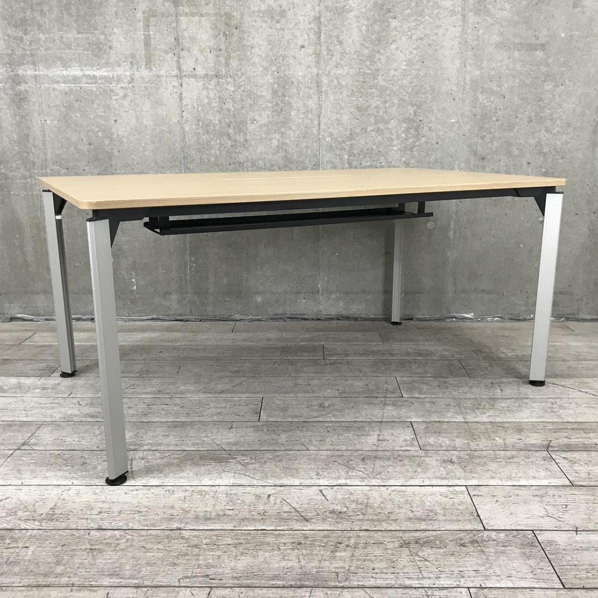 【4名様での会議におすすめ!洗練されたデザインが魅力のミーティングテーブル!】■イトーキ(ITOKI) 製 DEシリーズ ミーティングテーブル 会議テーブル ■W1500×D700㎜ ■4本脚シルバー ■木目ナチュラル