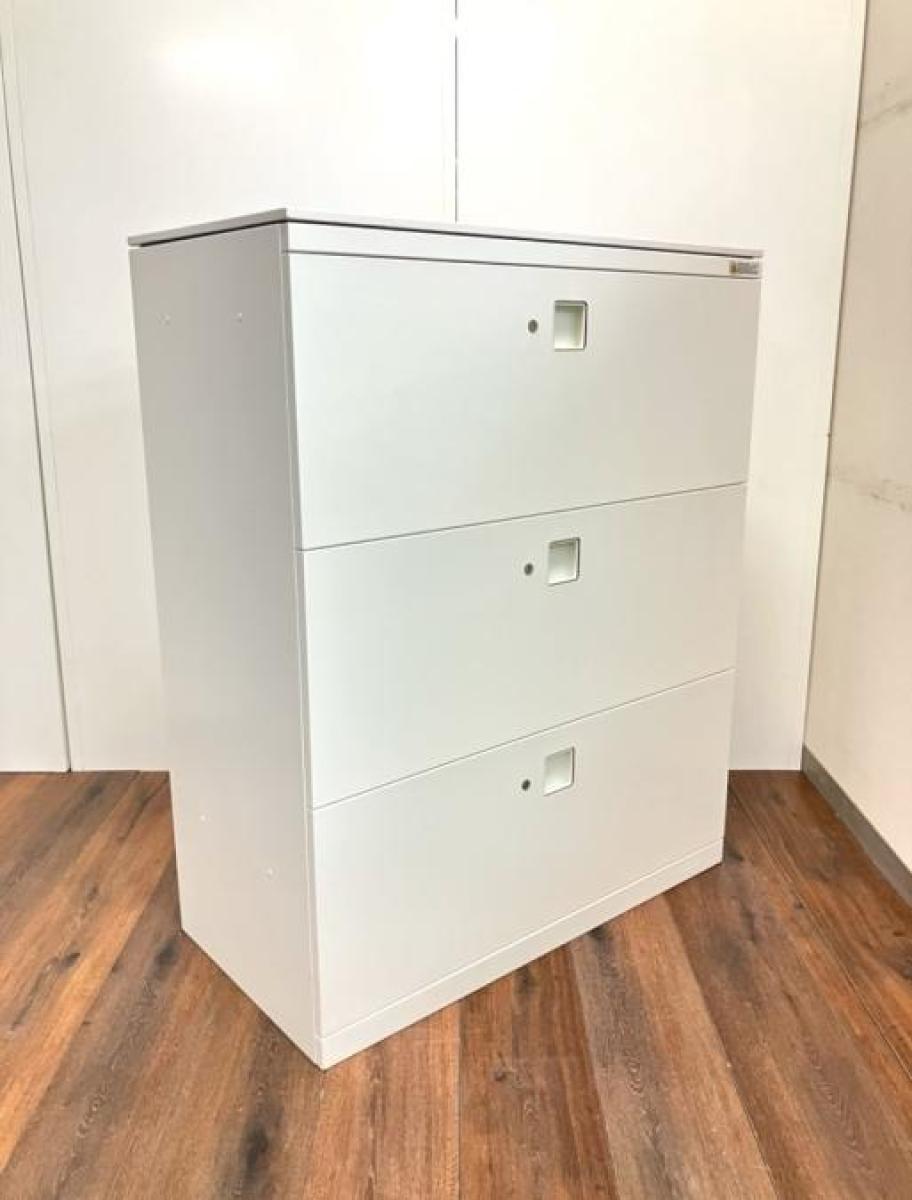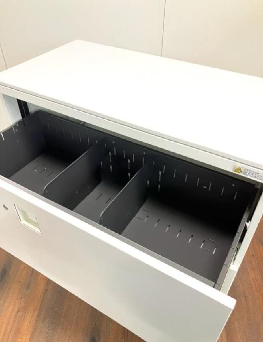 【在庫入替品】定番/大人気 オカムラ(okamura)製 レクトラインシリーズ 3段ラテラル ローキャビネット ホワイト シリンダー鍵(個別施錠タイプ)- 茨城南店