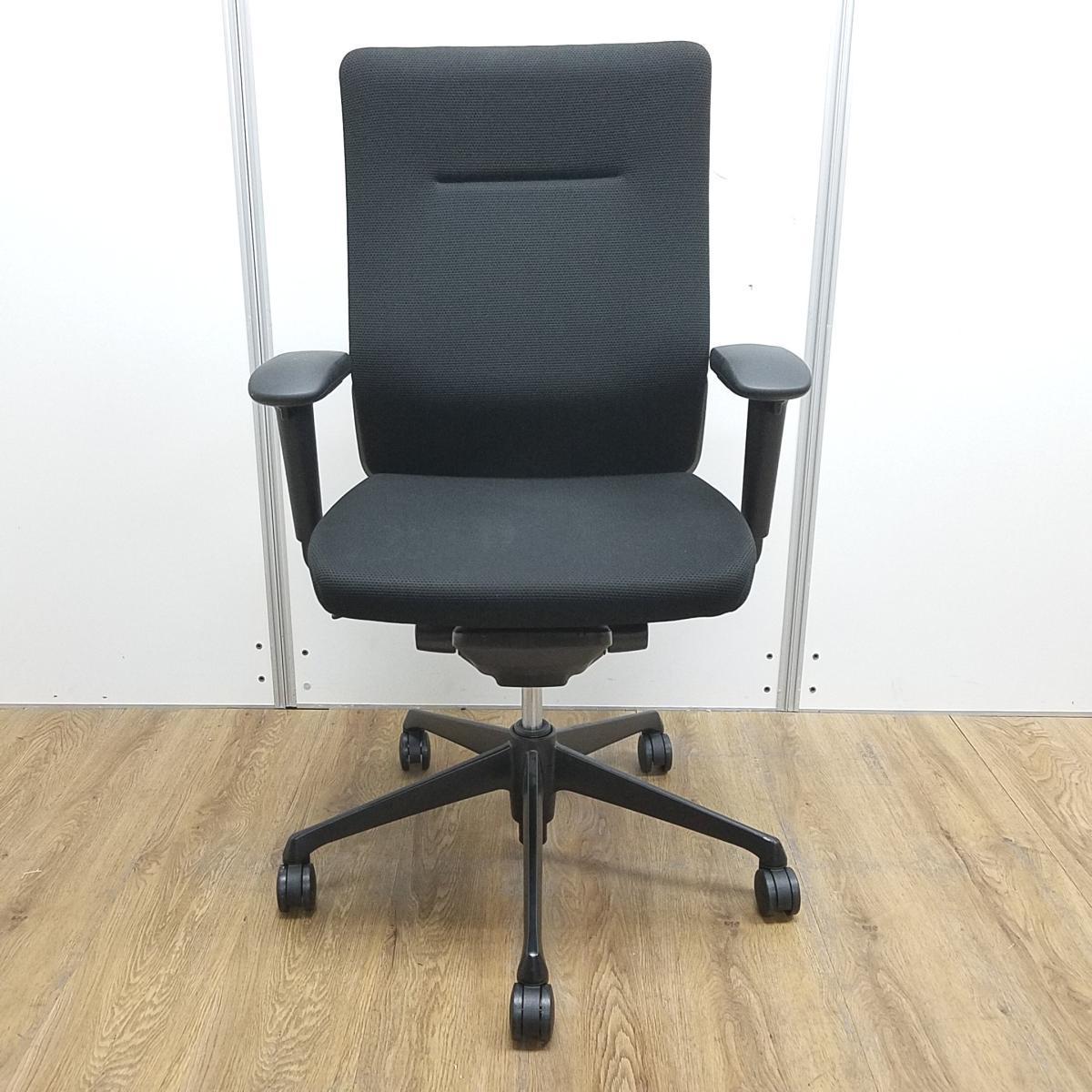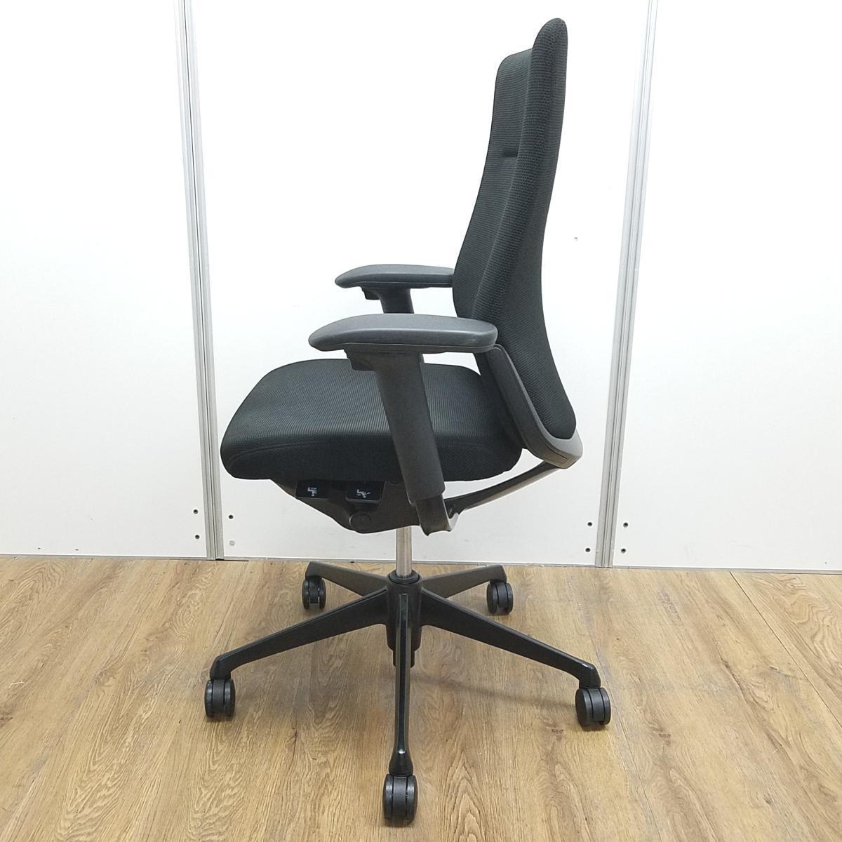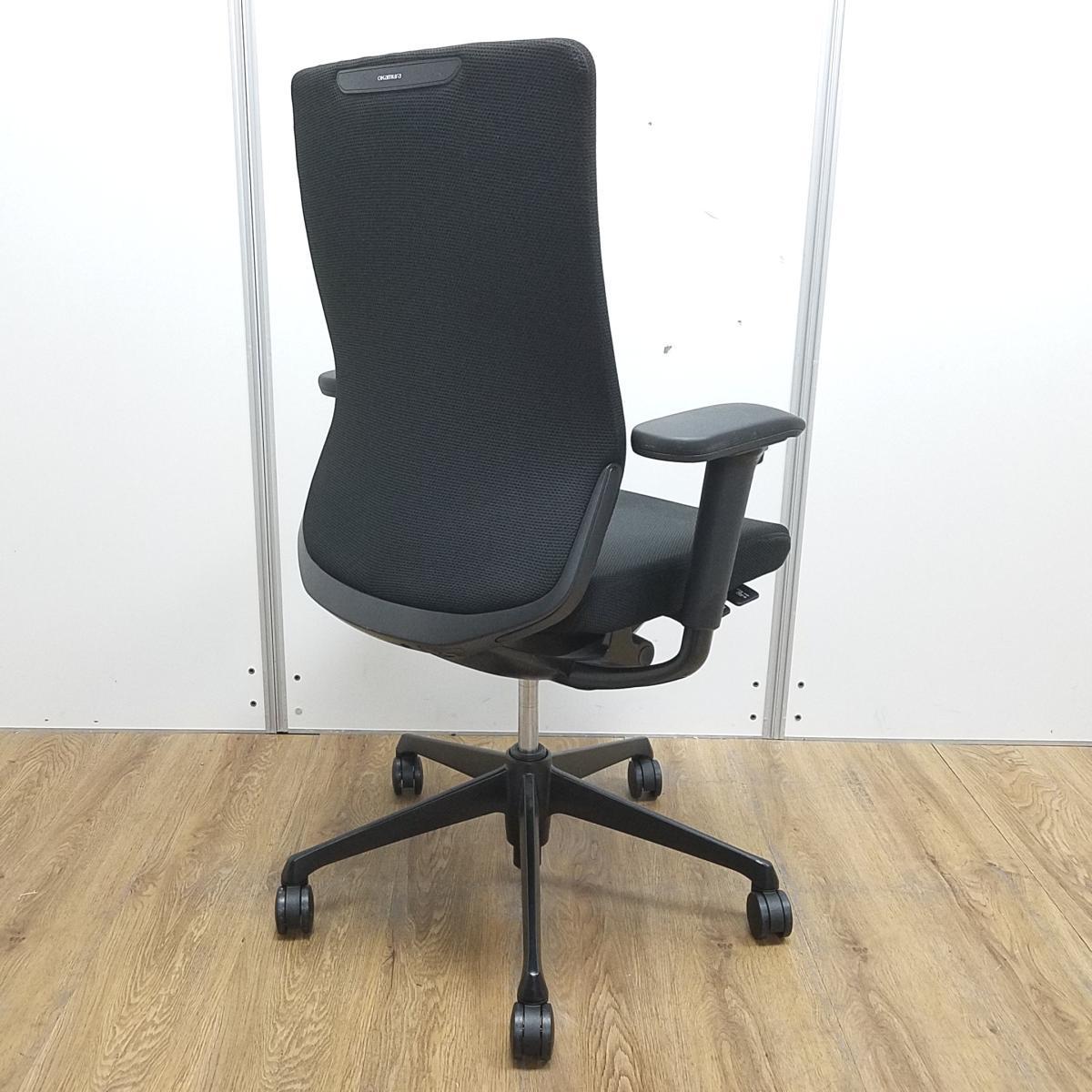 オカムラ製 コーラル ブラック 肘付き アジャストアーム※可動肘 ハイバック 背もたれクロス仕様 厚めのクッションで快適な座り心地を実現! どんな空間にも調和するデザインと最上級の操作性! 肘付きハイバックチェア!!- 東大阪店