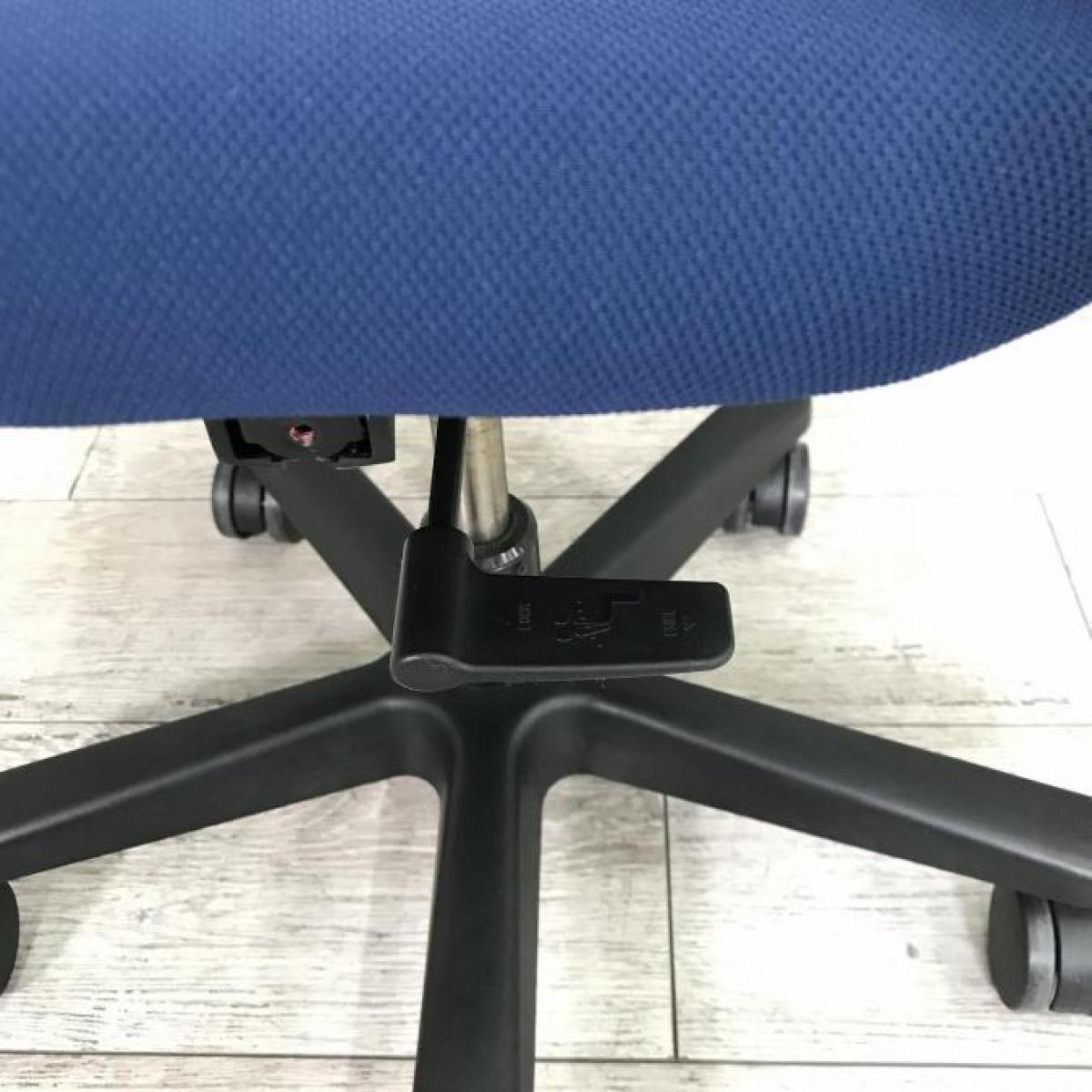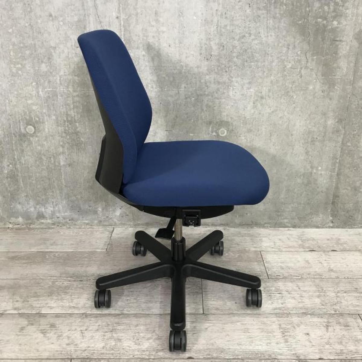お色はディープブルーです。年代・性別問わず人気があり、オフィスに取り入れやすいカラーです。また、深い青の張地は、黒同様に汚れが目立ちにくく特に人気です!