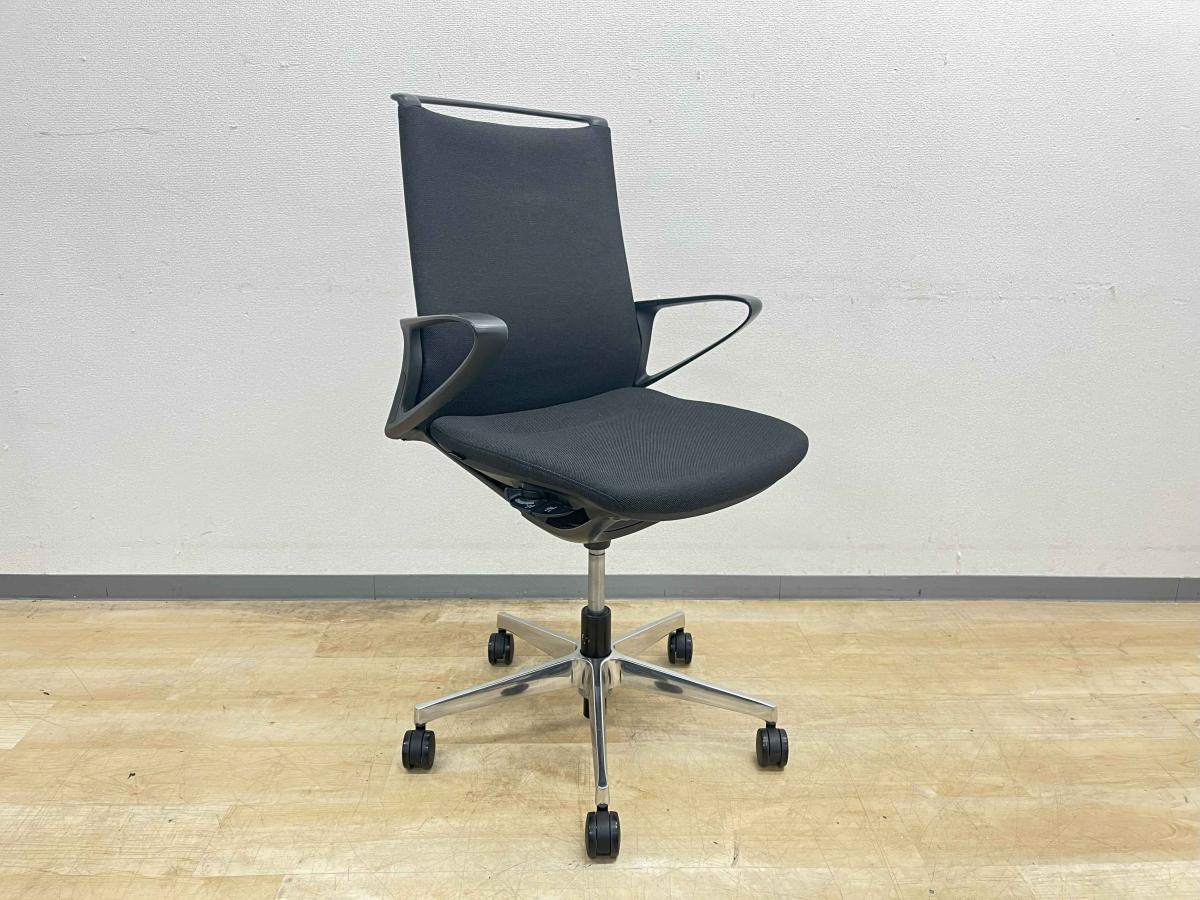 【在庫入替セール】オカムラ モード デザインアーム搭載 ミドルバック ブラック×アルミ脚 張地:クロス(プレーン) 高いデザイン性×シンプルかつ操作性のある機能