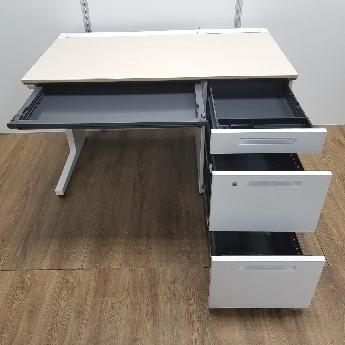 【部材欠け多数!わけあり!】【効率の良い収納付きデスク!横幅は1200㎜のオフィスデスクで最も定番のサイズ!】■コクヨ(KOKUYO)製 iSシリーズ 片袖机 ■ホワイト ■シリンダー錠