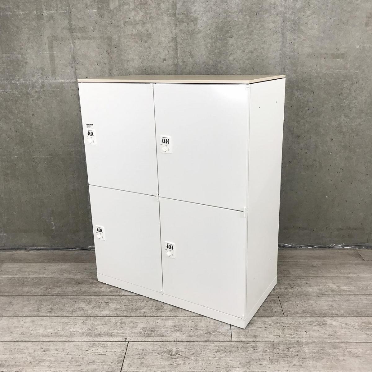 【在庫セール品・2台限定】【T11】■オカムラ レクトライン 4人用パーソナルロッカー ■ホワイト ■ナチュラル天板付 ※非常解除キーは付属ございません。