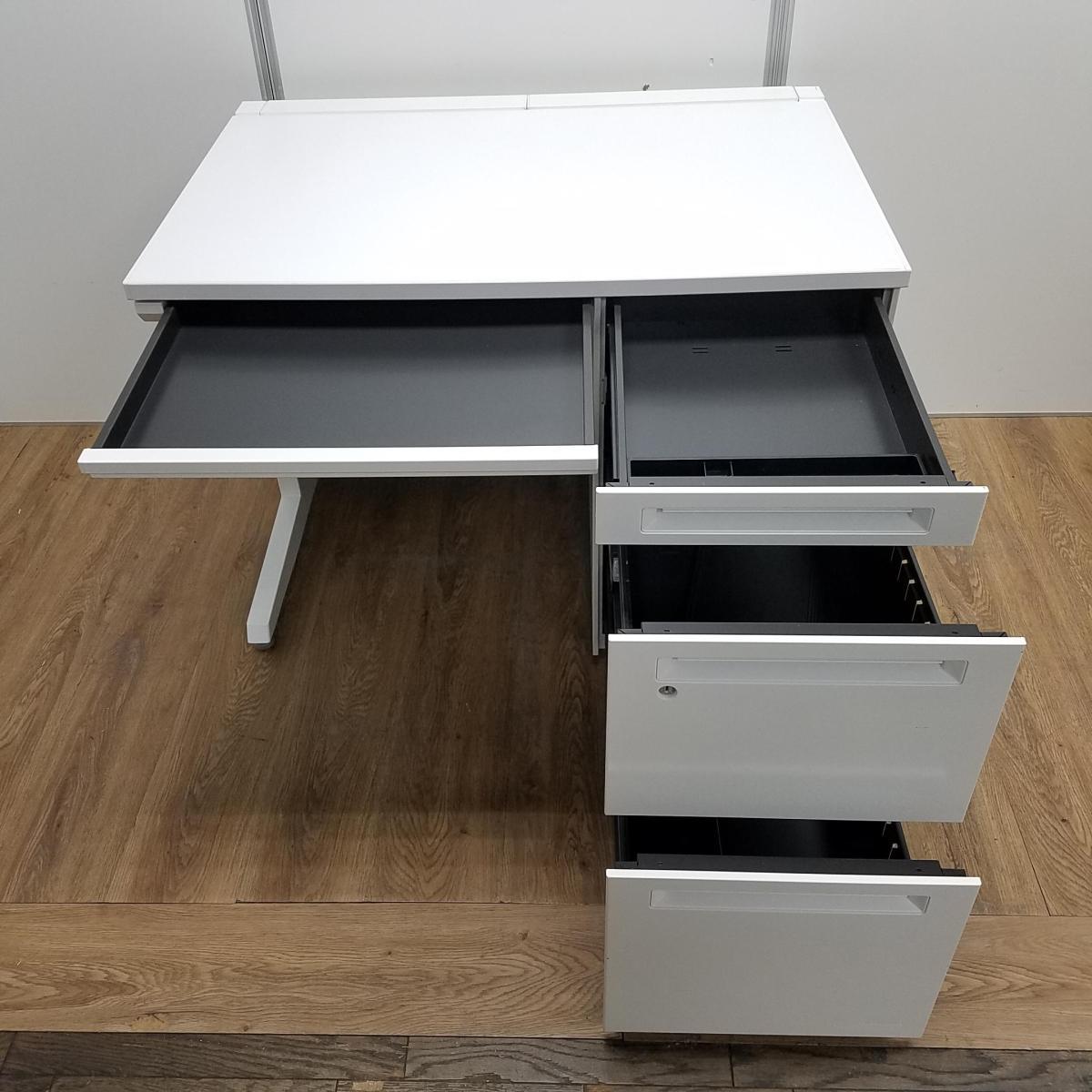【T11】【商品入替のため、残り6台限り】オカムラ製 アドバンシシリーズ ホワイトカラー 4段収納で整理も完璧! コンパクトで清潔感のあるオフィス W1000片袖机!!
