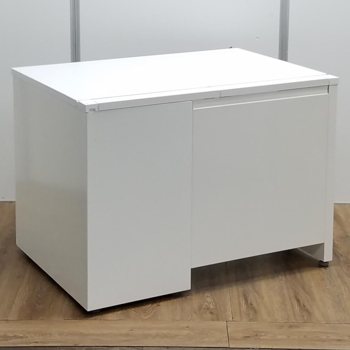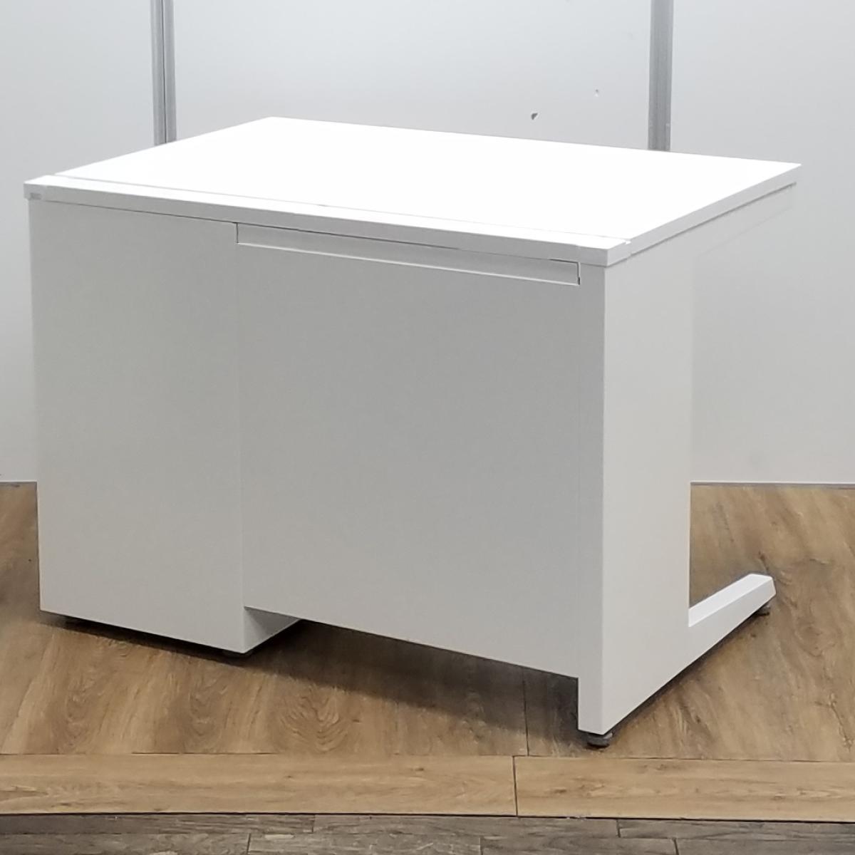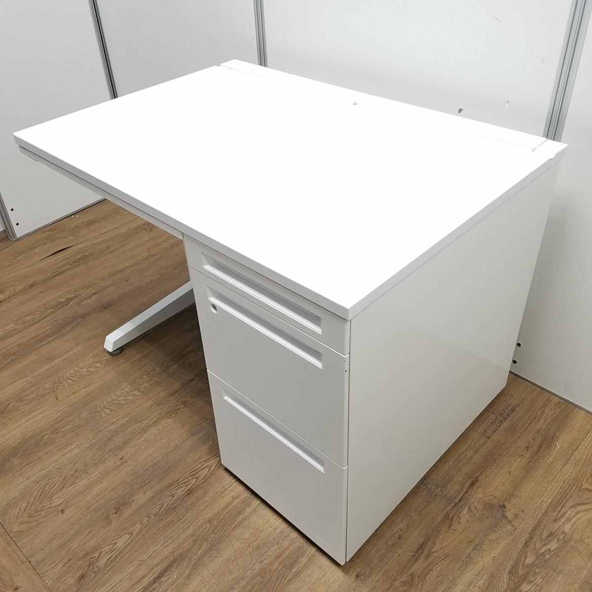 【T11】【K11】オカムラ製 アドバンス ホワイト 袖4段タイプ 収納庫付きで整理も完璧! コンパクトで清潔感のあるオフィス W1000片袖机!!- 京都東寺店