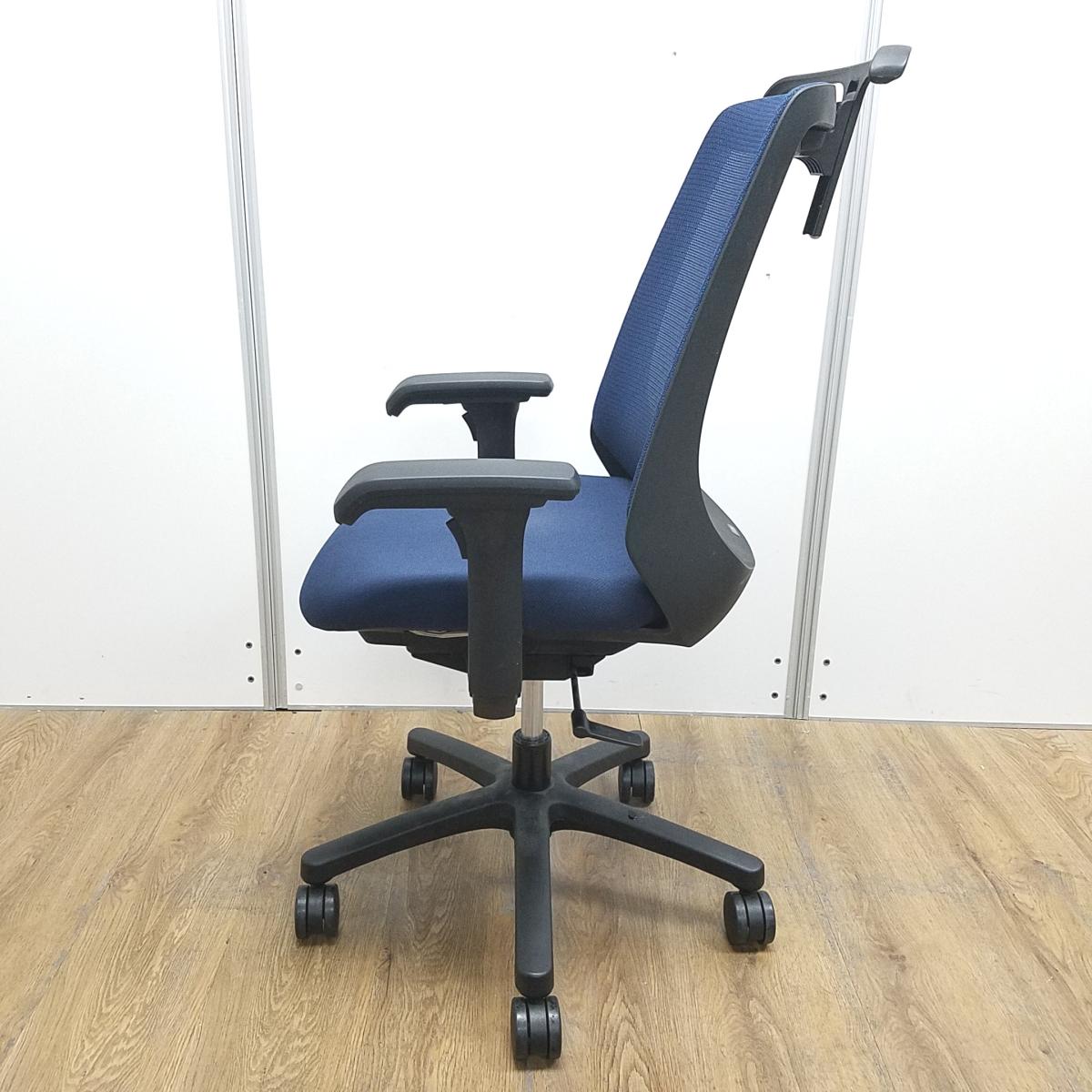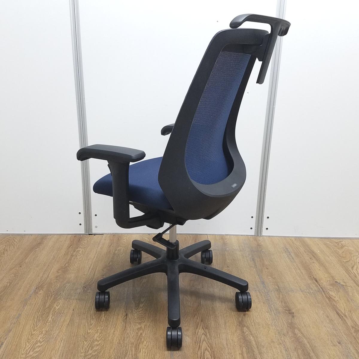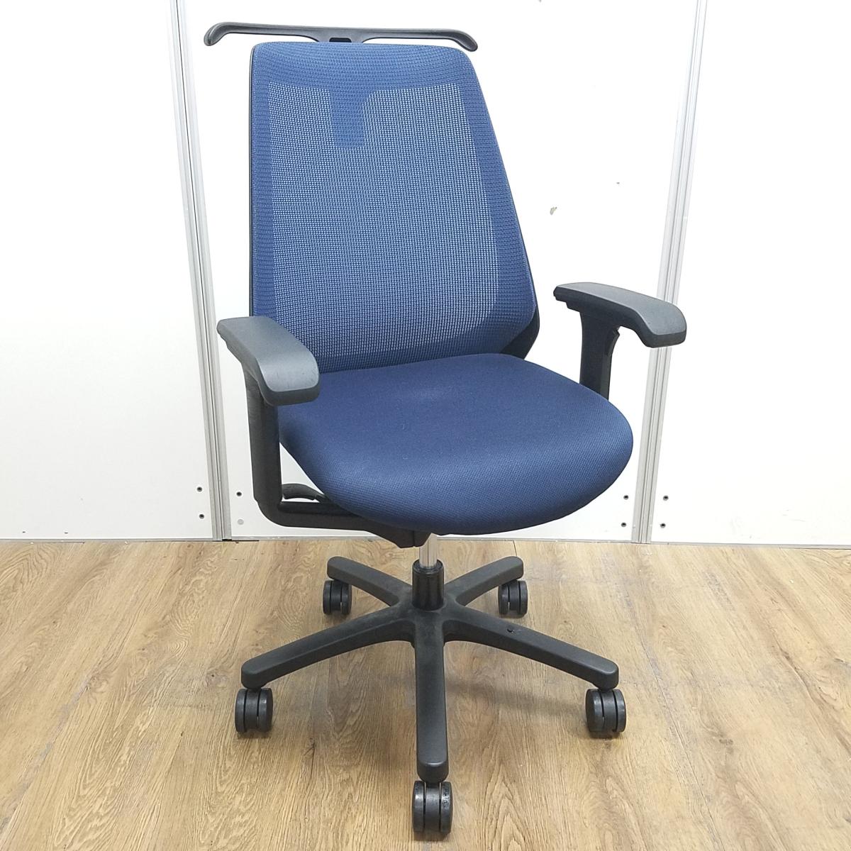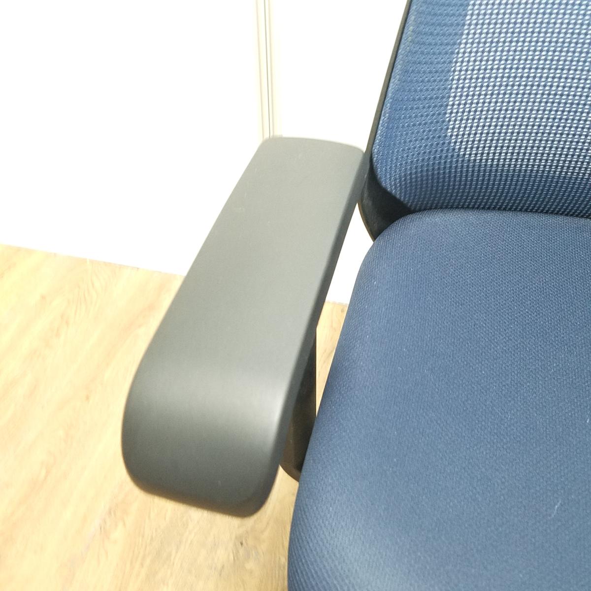 イトーキ製 ノナ ネイビーブルー ブラックフレーム 肘付き アジャスタブル※可動肘 ハイバック 背面メッシュ コートハンガー付 脚回りがコンパクトのため省スペースでも設置しやすい! 肘付きハイバックチェア- 京都東寺店
