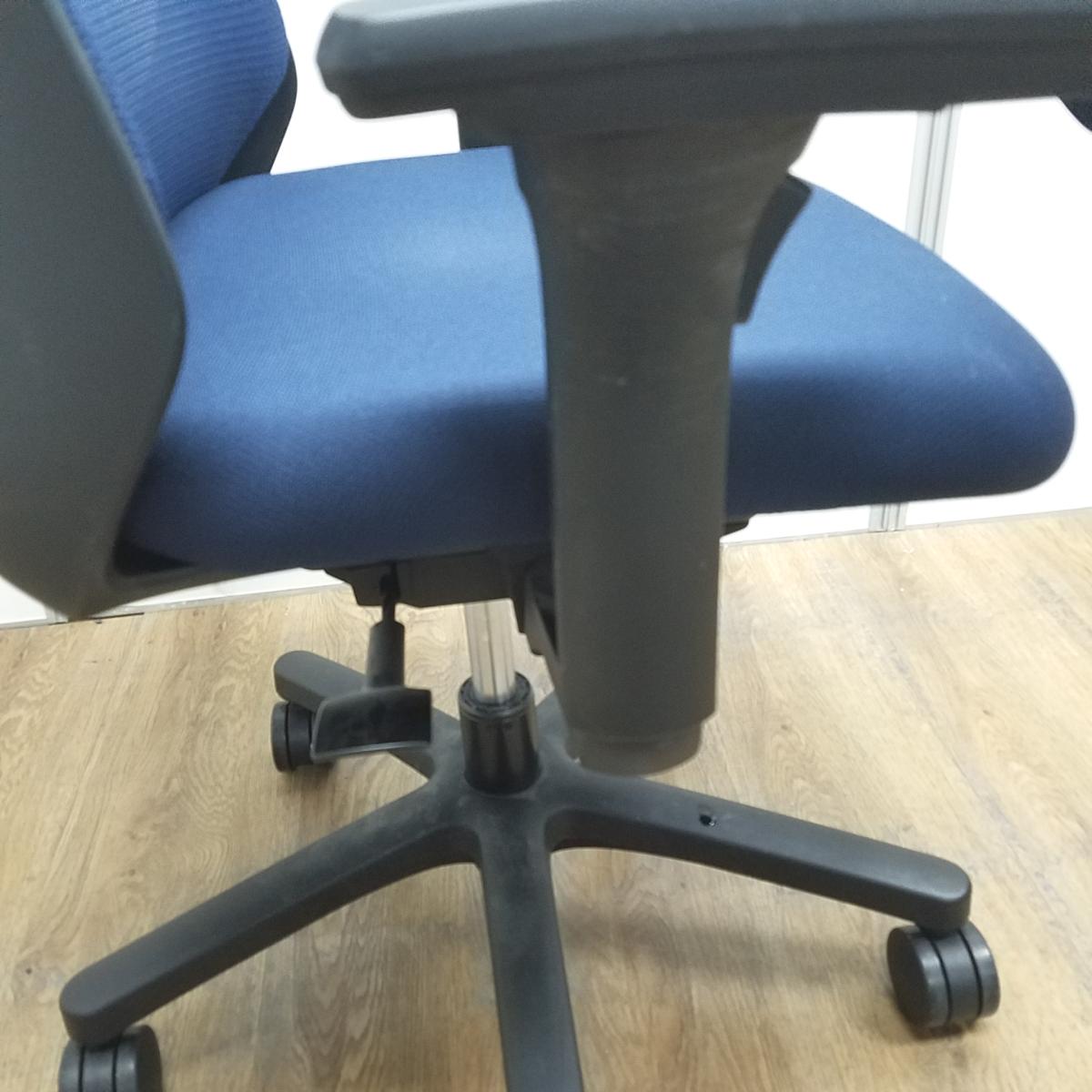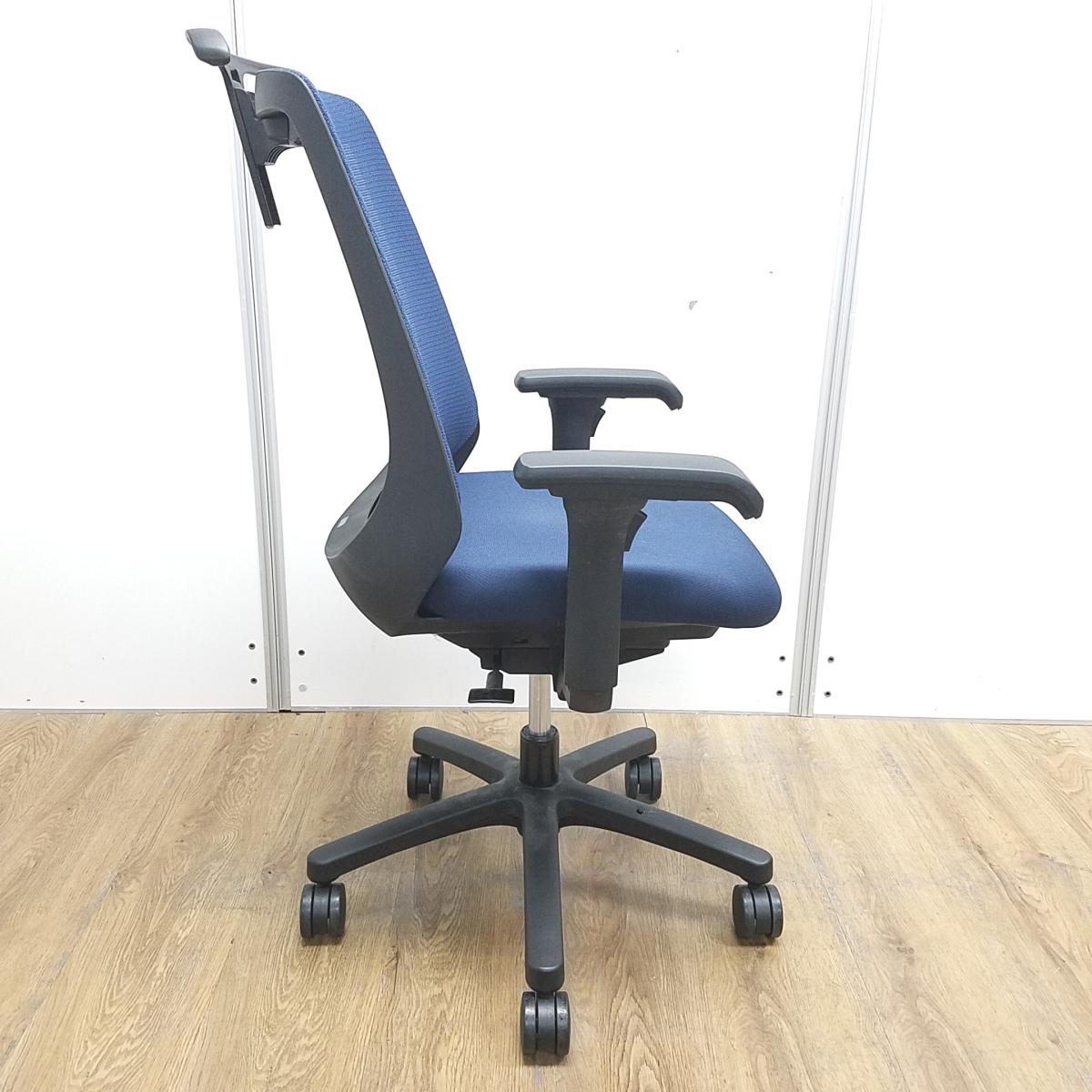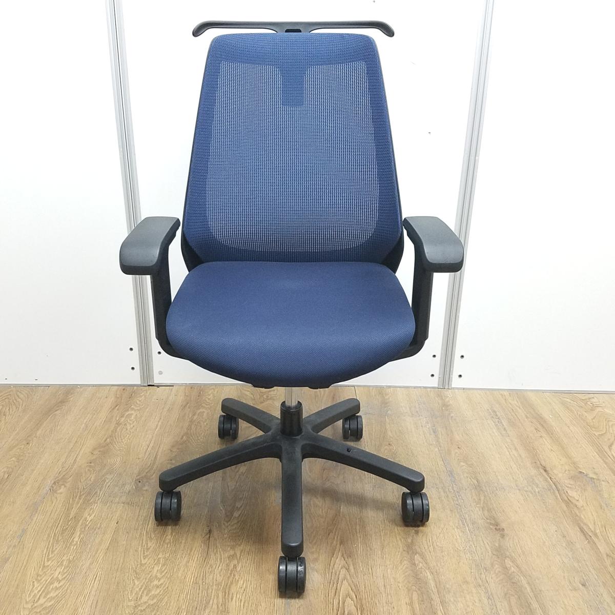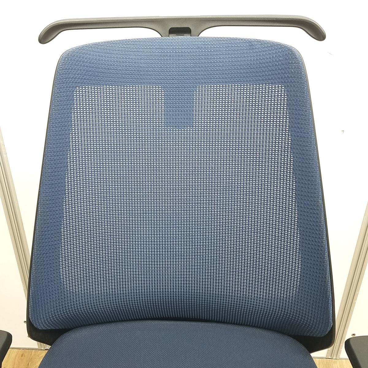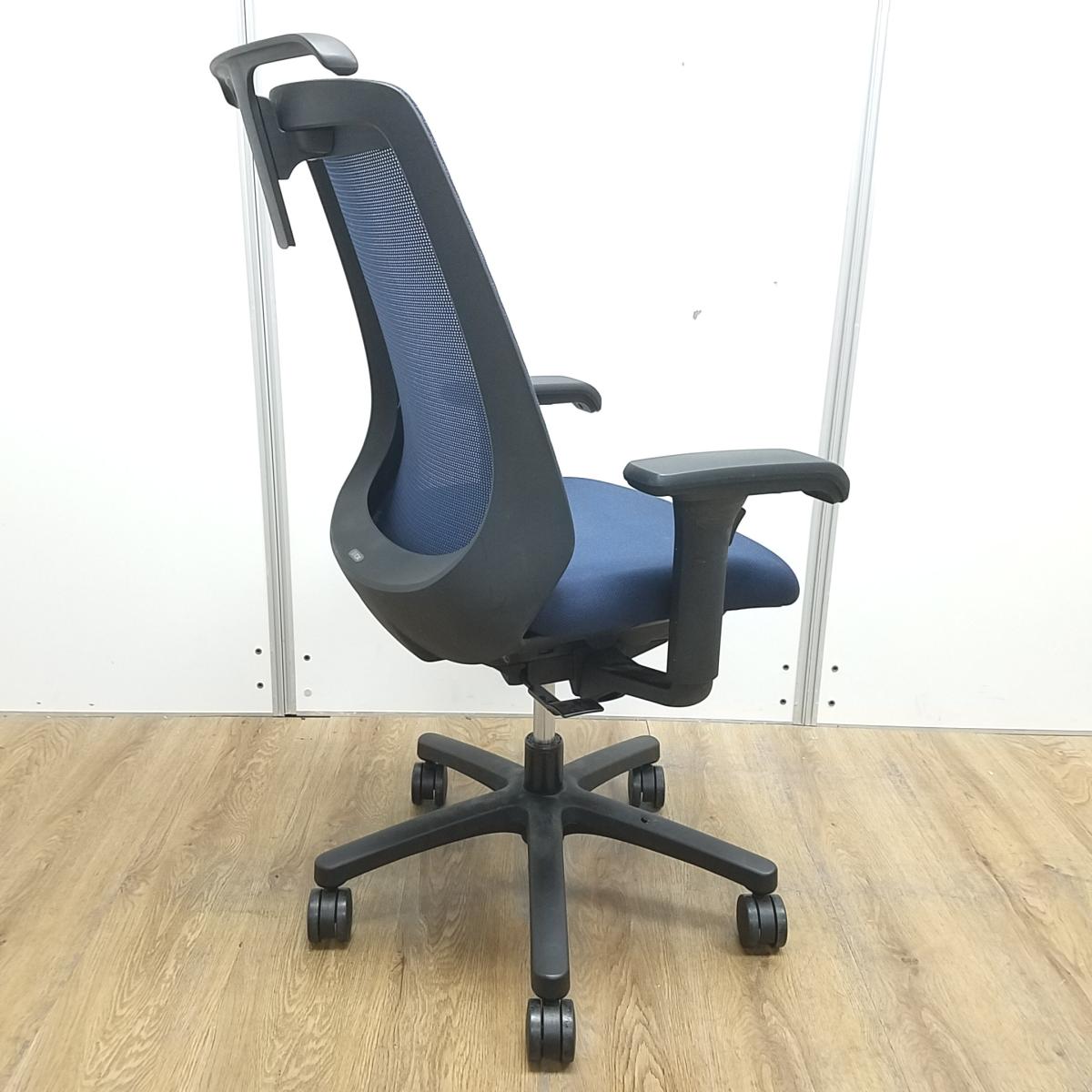 イトーキ製 ノナ ネイビーブルー ブラックフレーム 肘付き アジャスタブル※可動肘 ハイバック 背面メッシュ コートハンガー付 脚回りがコンパクトのため省スペースでも設置しやすい! 肘付きハイバックチェア- 京都東寺店