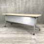 【天板跳ね上げ式でコンパクトに収納!キャスター付きで移動も楽々!】■ウチダ(UCHIDA)製 SP型シリーズ サイドスタックテーブル W1800×D600㎜ ■キャスター付 ■幕板付 ■木目ナチュラル- つくば店