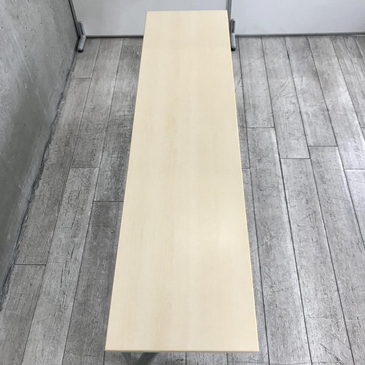 【定価約8万円】【天板ナチュラルカラーの人気サイドスタックテーブル!2~3人使用に最適!】■オカムラ(okamura) 製 ネスティアシリーズ(NESTIA) サイドスタックテーブル W1800×D450㎜ ■幕板付 ■木目ナチュラル- 千葉店