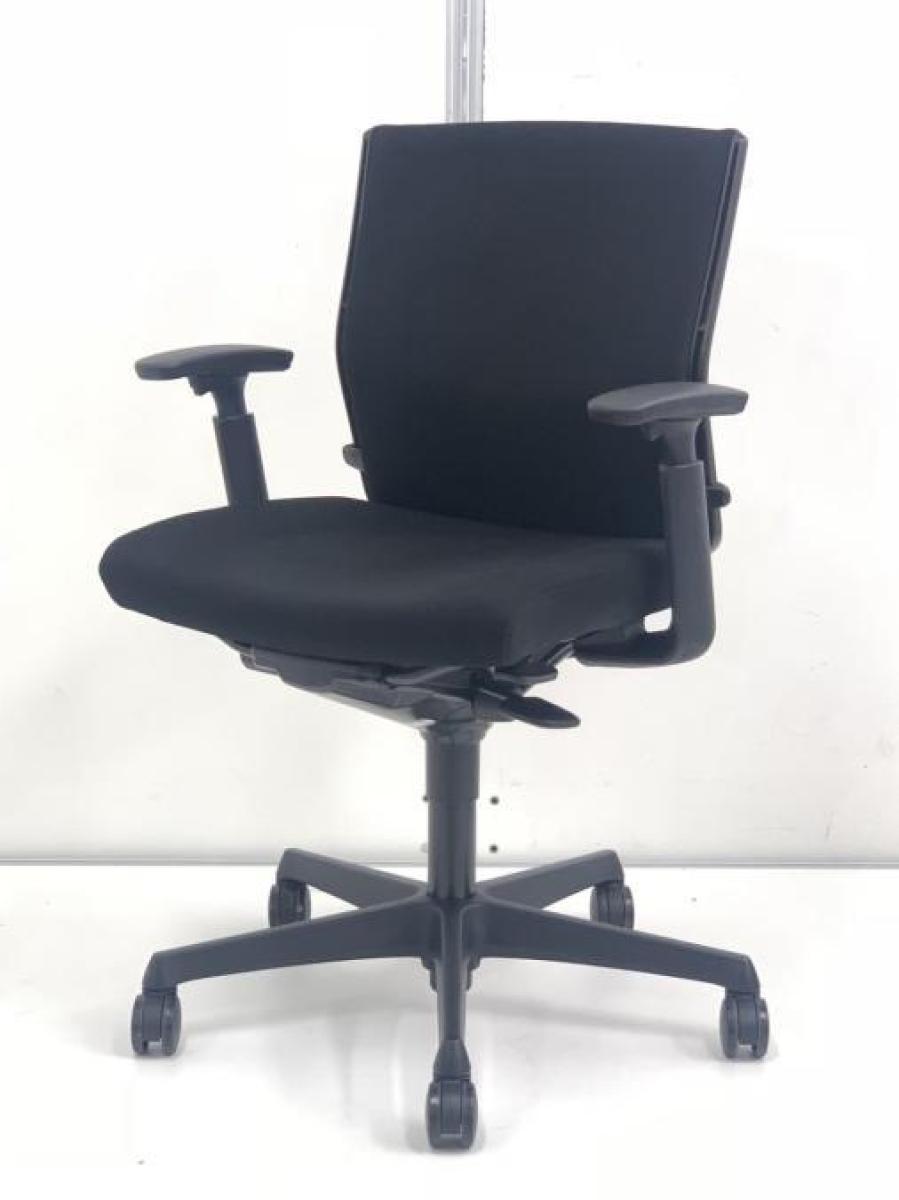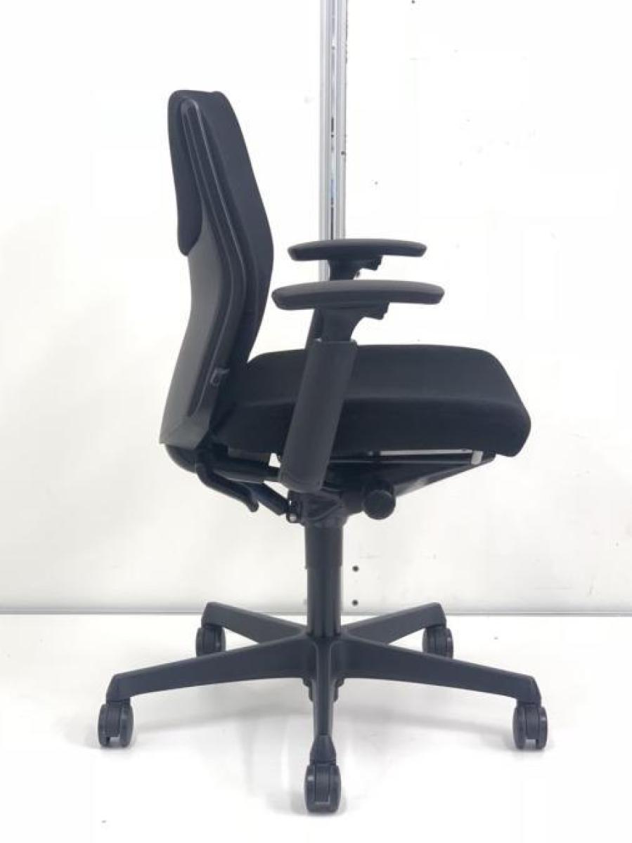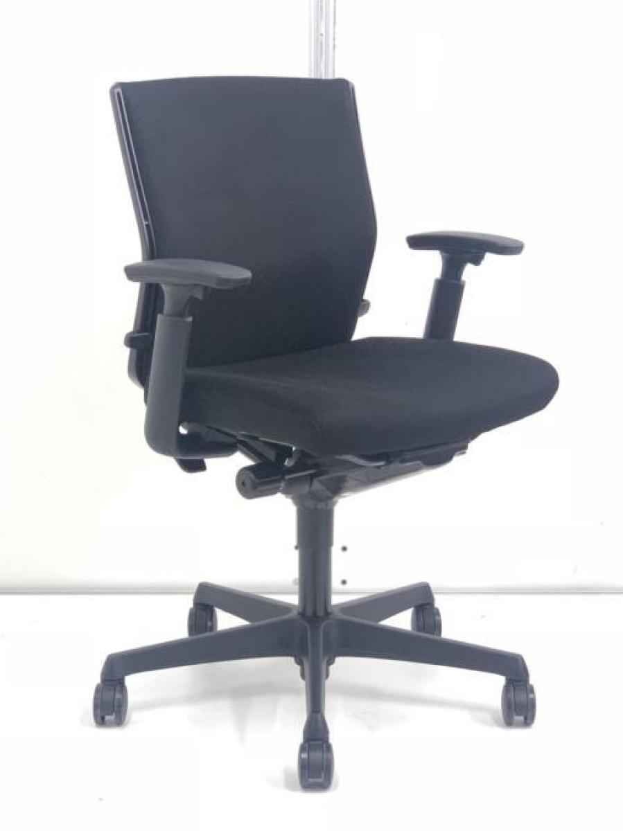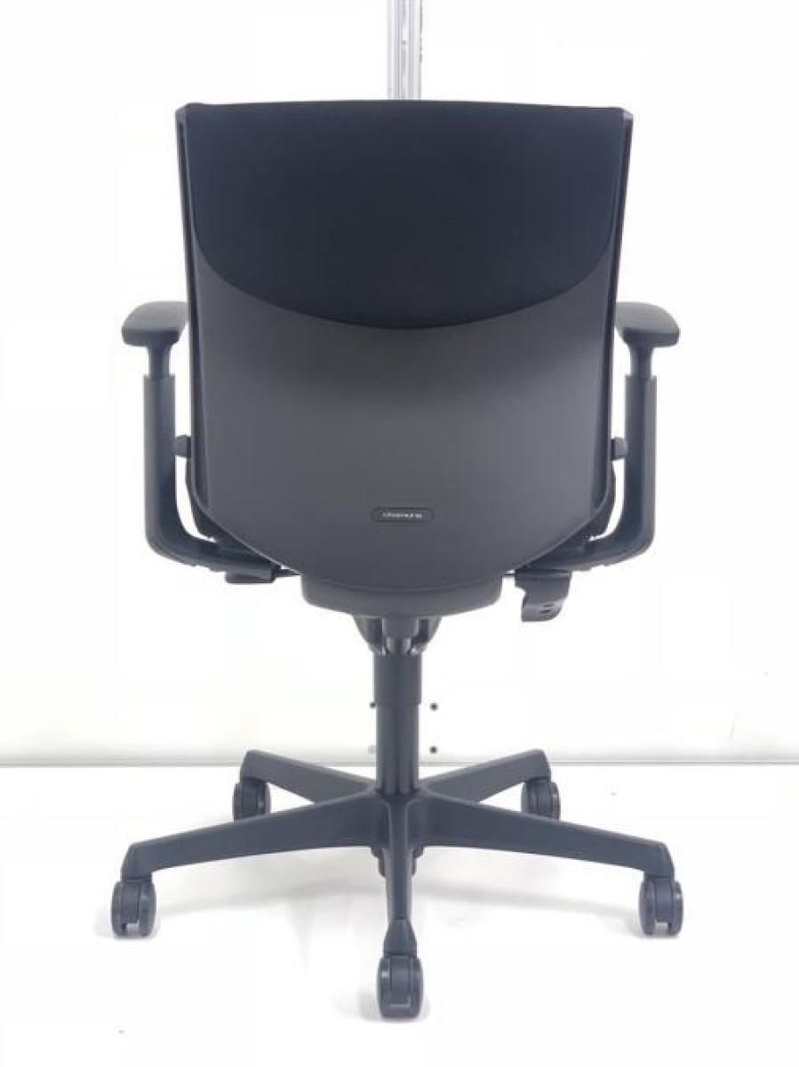 オカムラ エスクード ローバックモデル クッションタイプ デザインアーム付き ブラック×ブラックフレーム ランバーサポート搭載で安定感のある機能面と座り心地