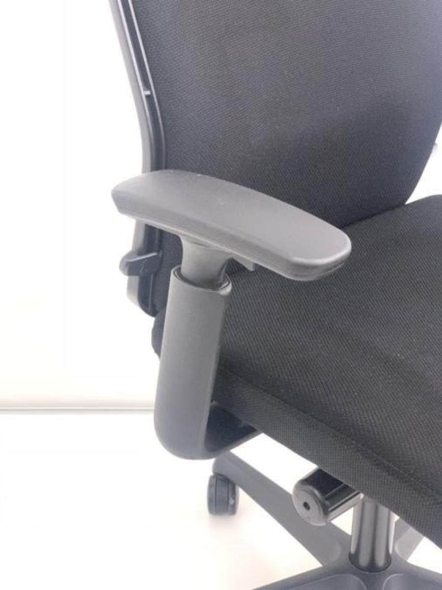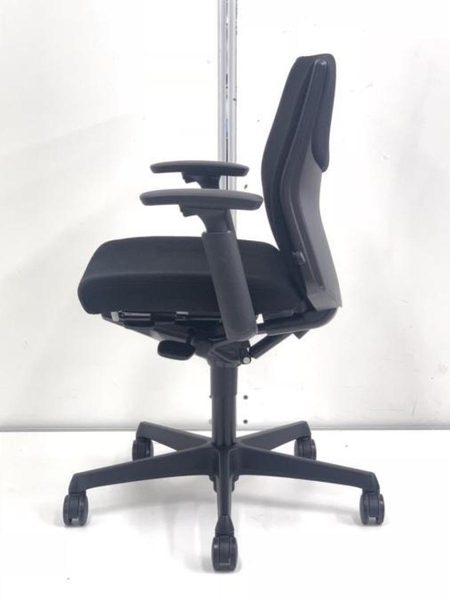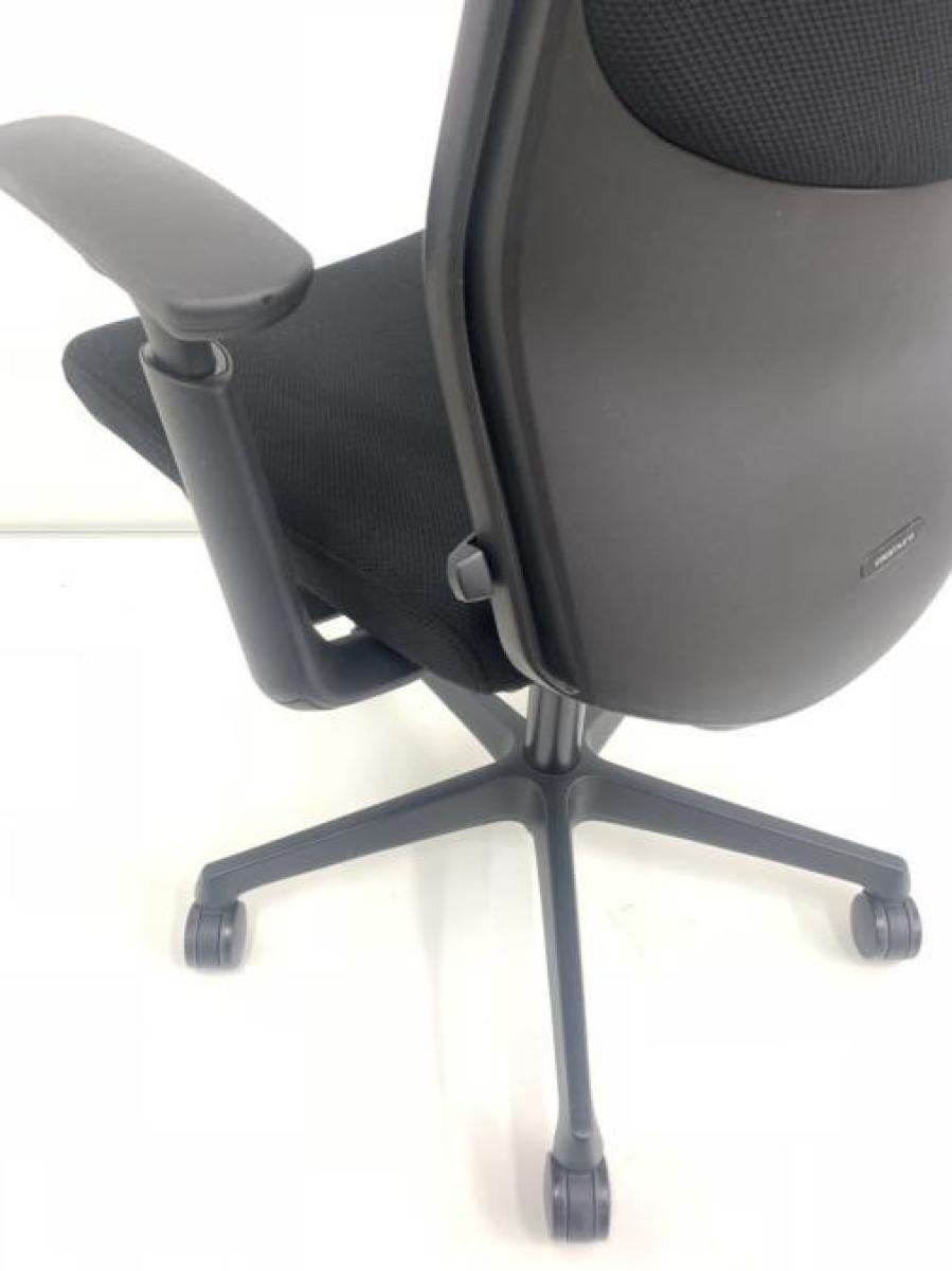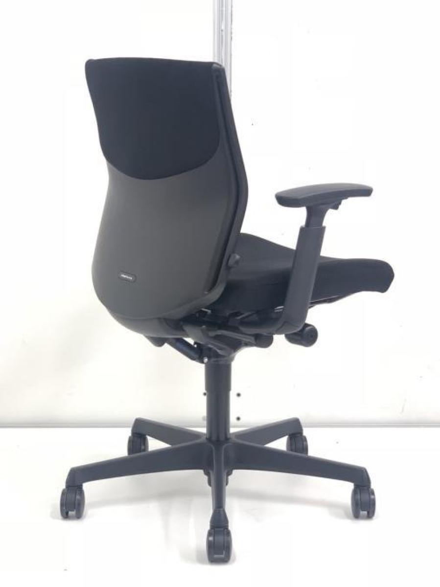 オカムラ エスクード ローバックモデル クッションタイプ デザインアーム付き ブラック×ブラックフレーム ランバーサポート搭載で安定感のある機能面と座り心地