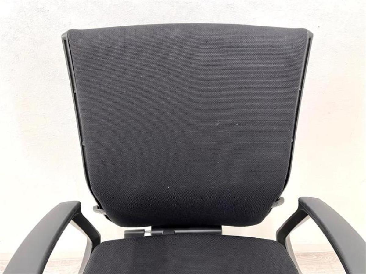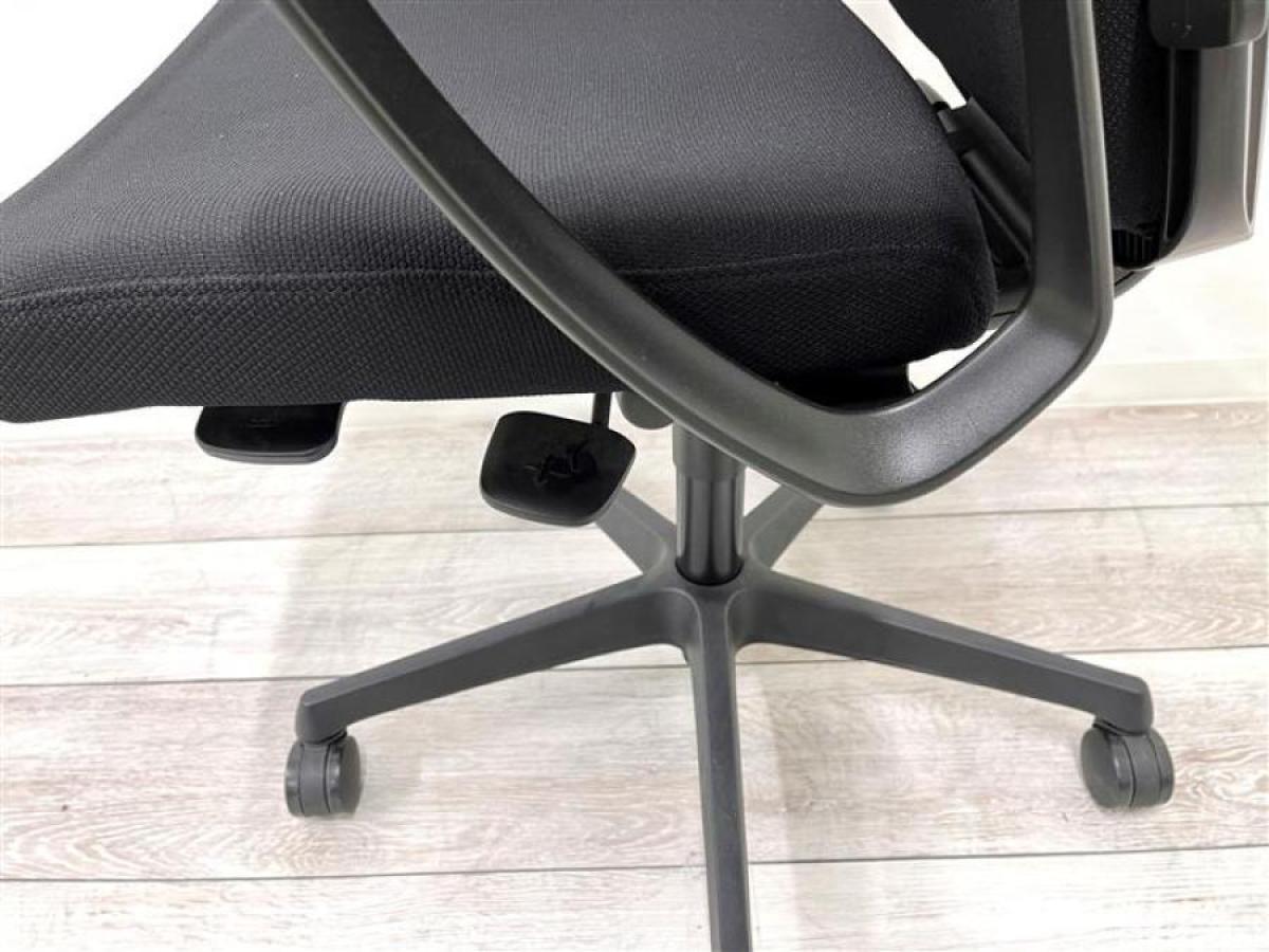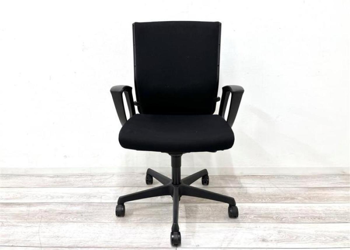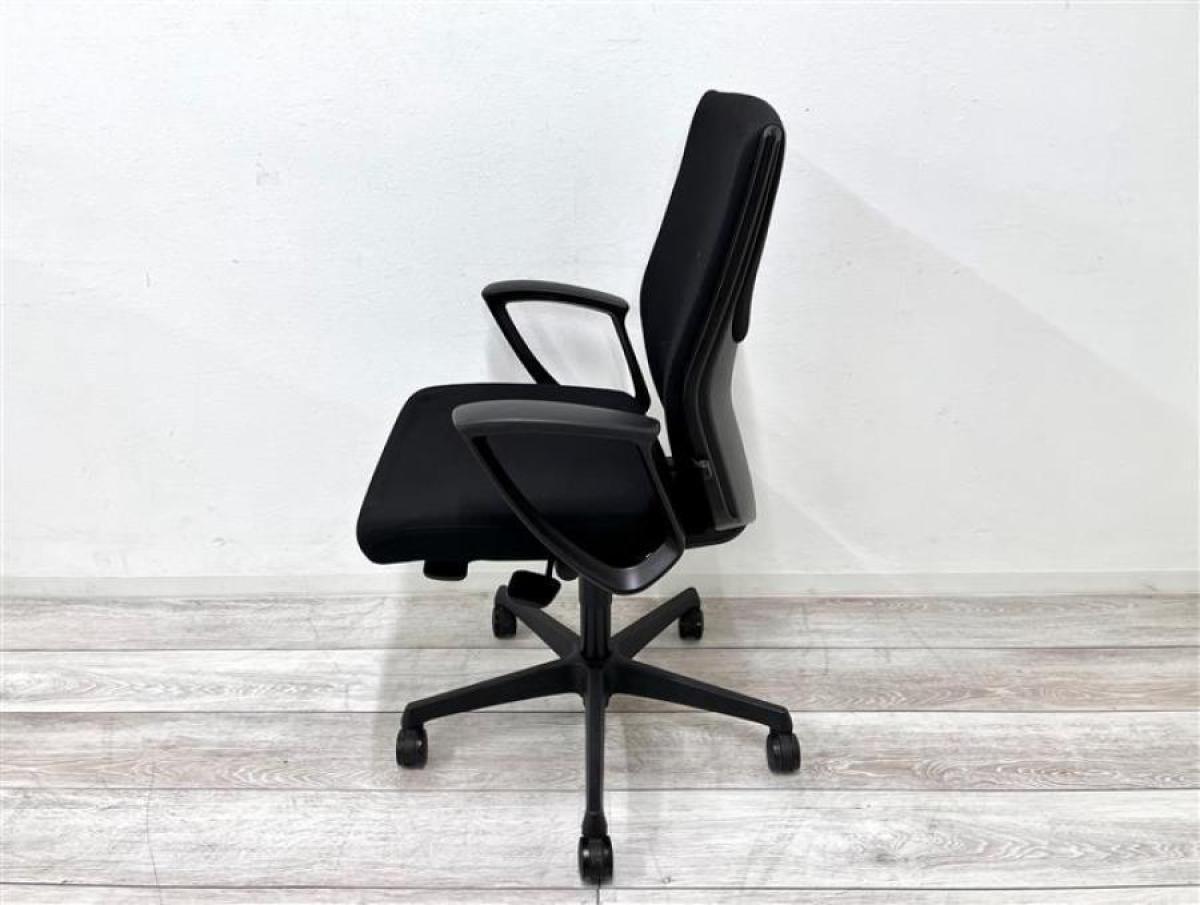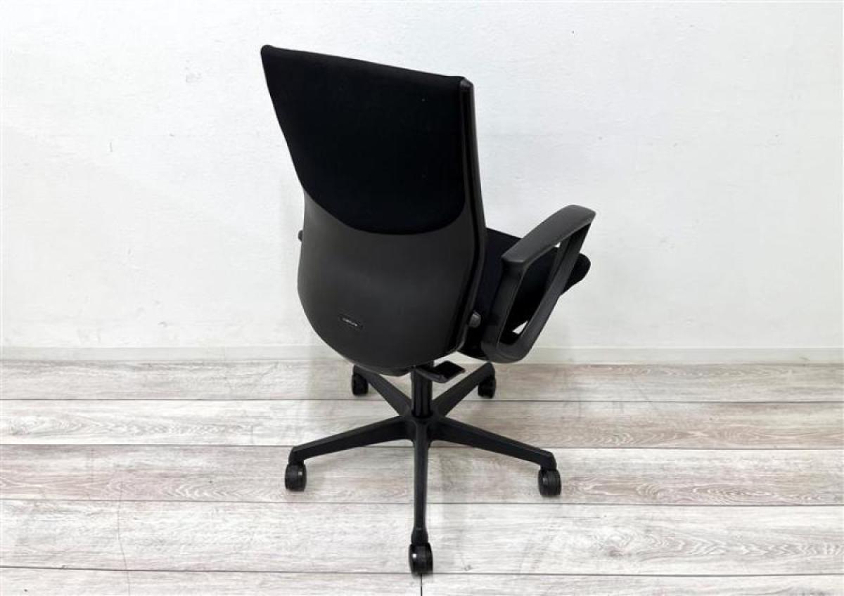 オカムラ エスクード ローバックモデル クッションタイプ デザインアーム付き ブラック×ブラックフレーム ランバーサポート搭載で安定感のある機能面と座り心地