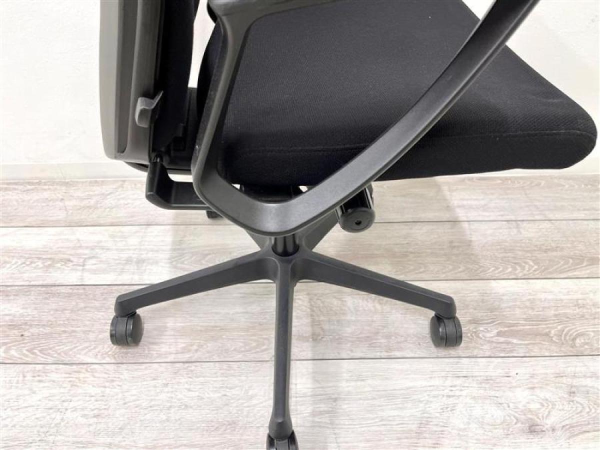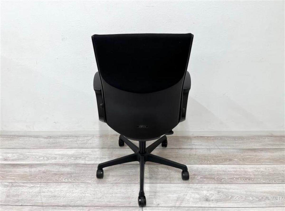 オカムラ エスクード ローバックモデル クッションタイプ デザインアーム付き ブラック×ブラックフレーム ランバーサポート搭載で安定感のある機能面と座り心地