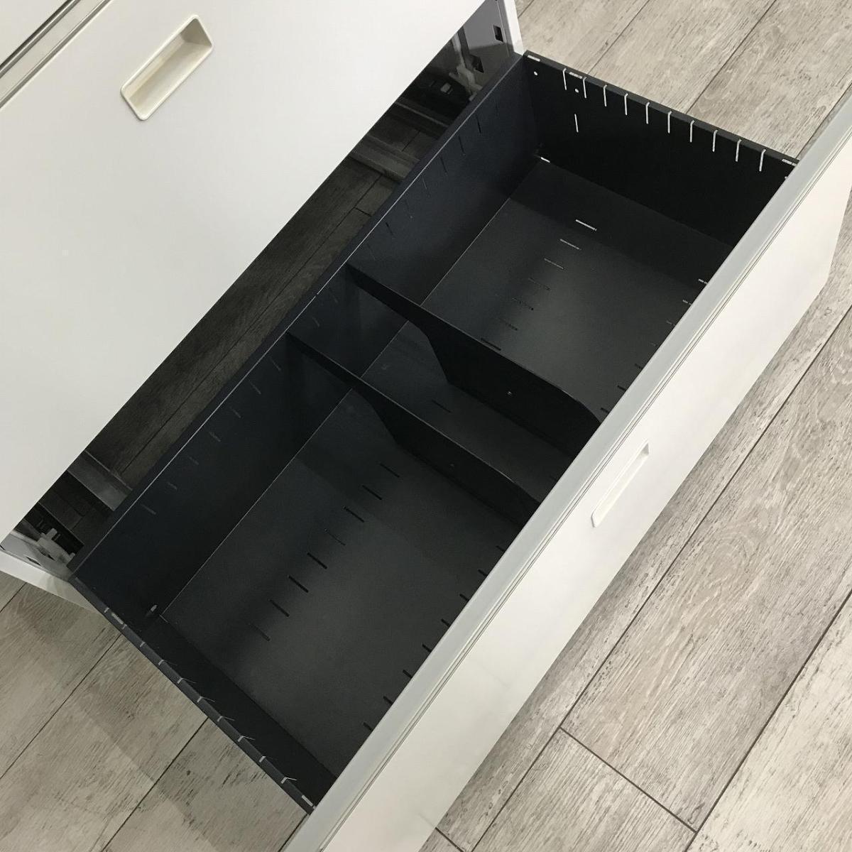 【珍しい2段ラテラルタイプ!】耐久性・機能性を兼ね備えたキャビネット!スペースにジャストフィットする引き出し型収納 ■イトーキ/シンライン/ホワイト シリンダー錠
