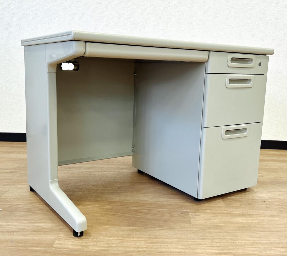 【☆省スペースタイプのオフィスデスク!】■プラス製 片袖デスク W1000×D600×H700mm エルグレー ■スタンダードなデザインで使いやすい!【PLUS LA】- 川崎店