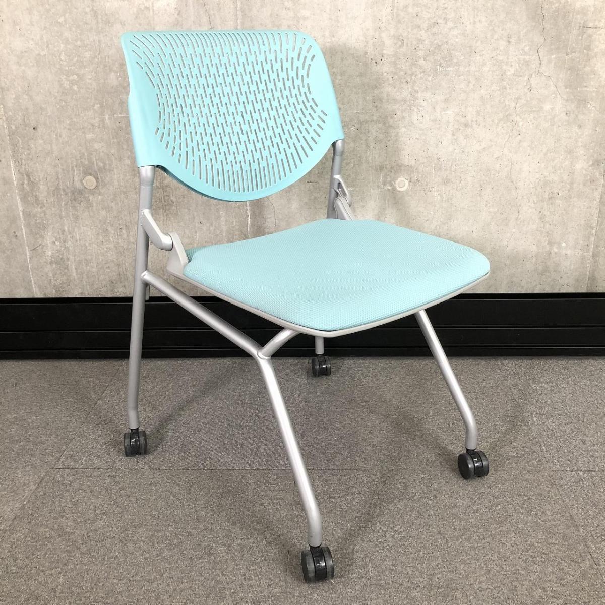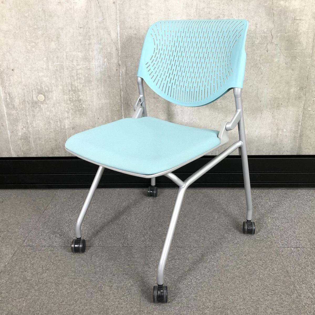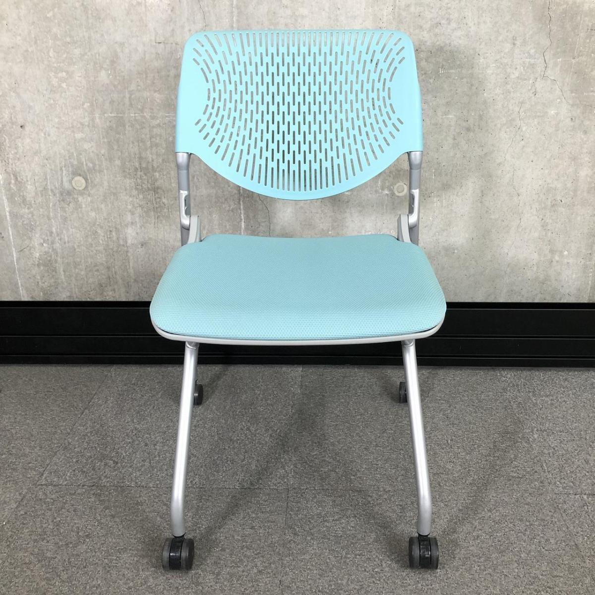 【★ネスティングチェアが20脚入荷★】◆オカムラ/ルナ Runa ミーティング 折り畳み 水色 ライトブルー 福岡 博多 天神 九州最大級 オフィスバスターズ- 福岡博多店