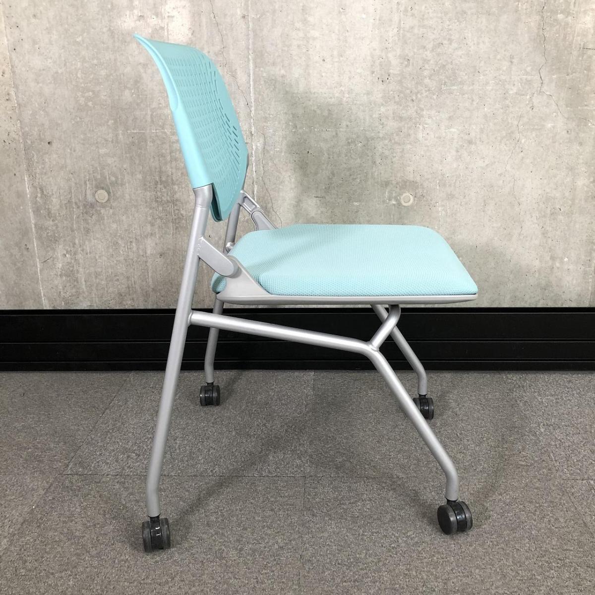 【関東倉庫在庫品】【フレキシブルに使える!使わない時は省スペースで収納可能!】■オカムラ製 ルナ ネスティングチェア ■ライトブルー【弊社使用欄:A01008468】【ECBMC】
