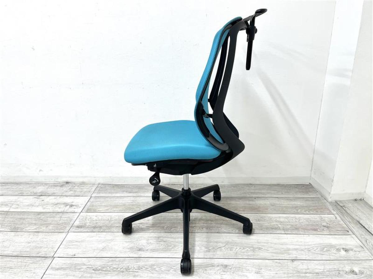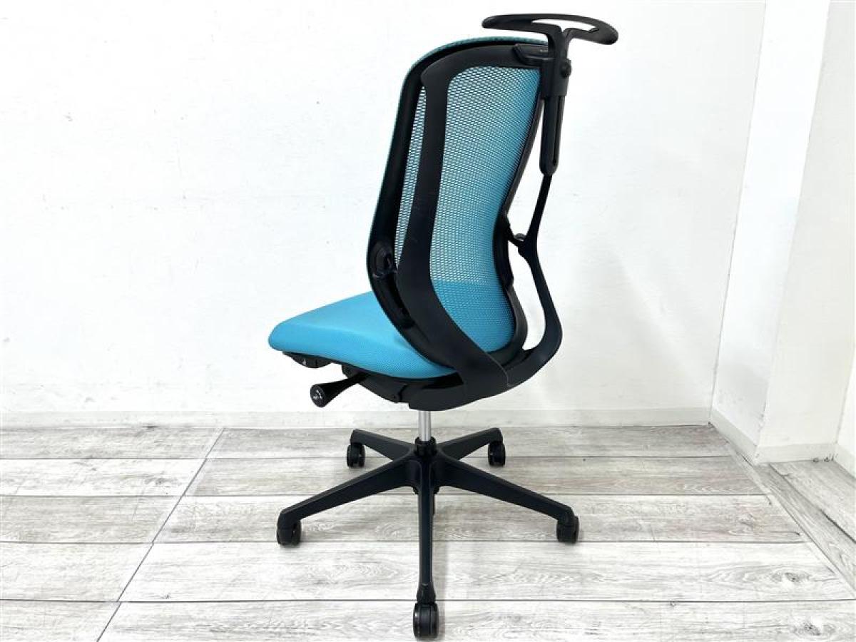 背のカーブを変えられる!前傾機能付きの新感覚のオフィスシーティング!包み込まれるような快適な座り心地! ■オカムラ/シルフィーチェア/ブルーグリーン コートハンガー付