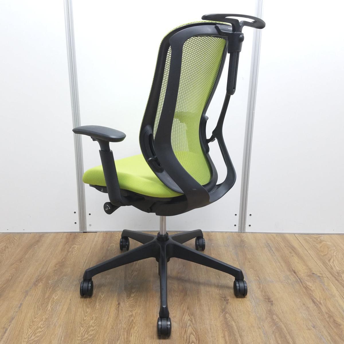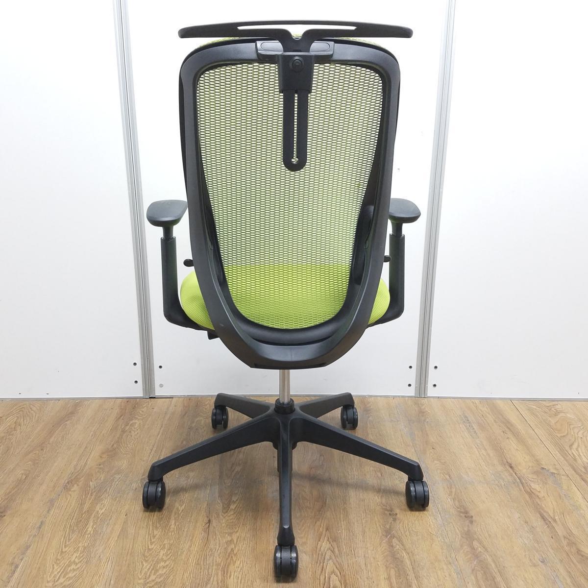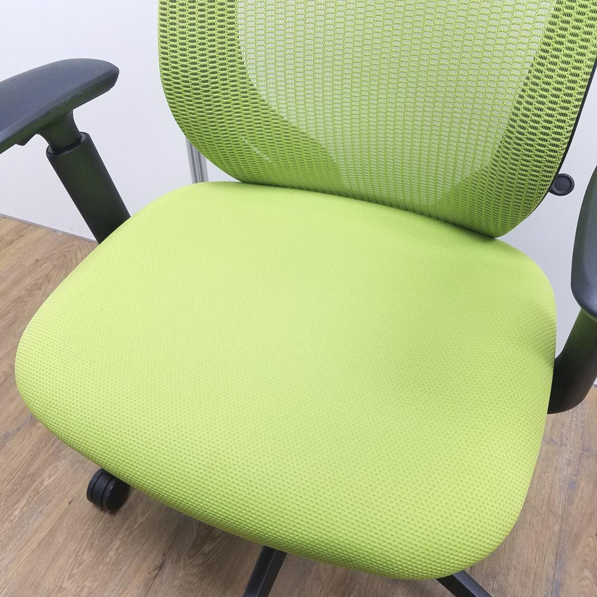 【在庫入替セール品!(本在庫限定価格)】【包み込まれるような快適な座り心地!】■オカムラ シルフィーチェア 可動肘付 ライムグリーン ハンガー付 ■背のカーブを変えられる!新感覚のオフィスシーティング!【Okamrua Sylphy】- 川崎店