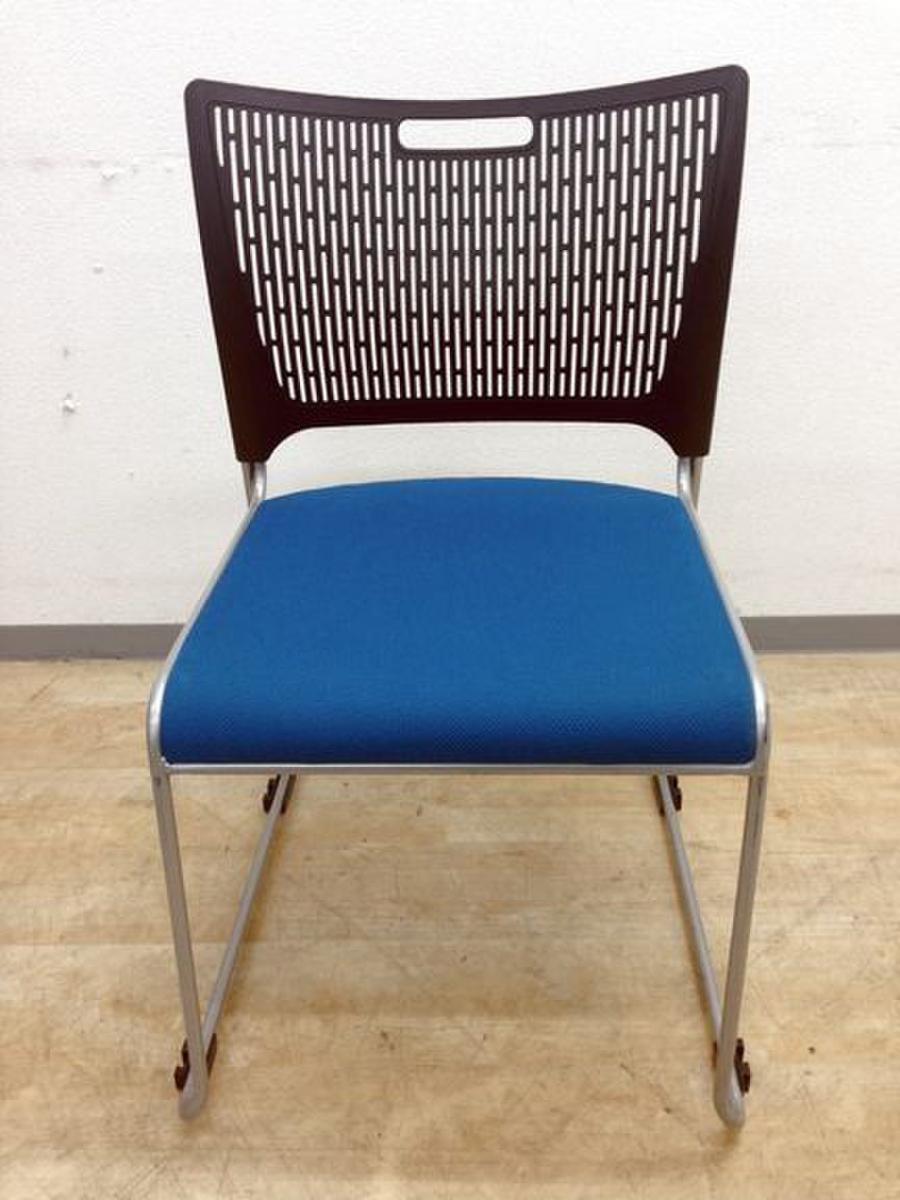 【在庫入替セール品!】コンパクトで人気なミーティングチェア!会議用スタッキングチェアの定番!重ねて収納可能な便利な商品! ■オカムラ/レーテチェア/ブルー 【キャスター無で安定感〇】