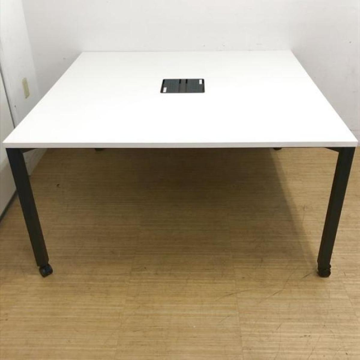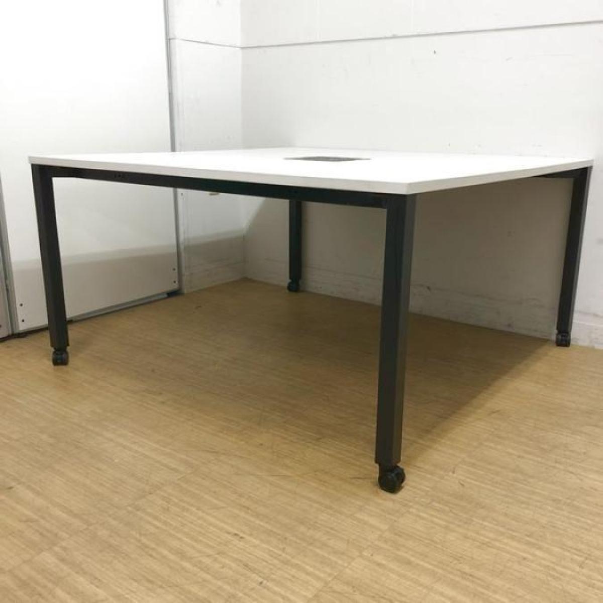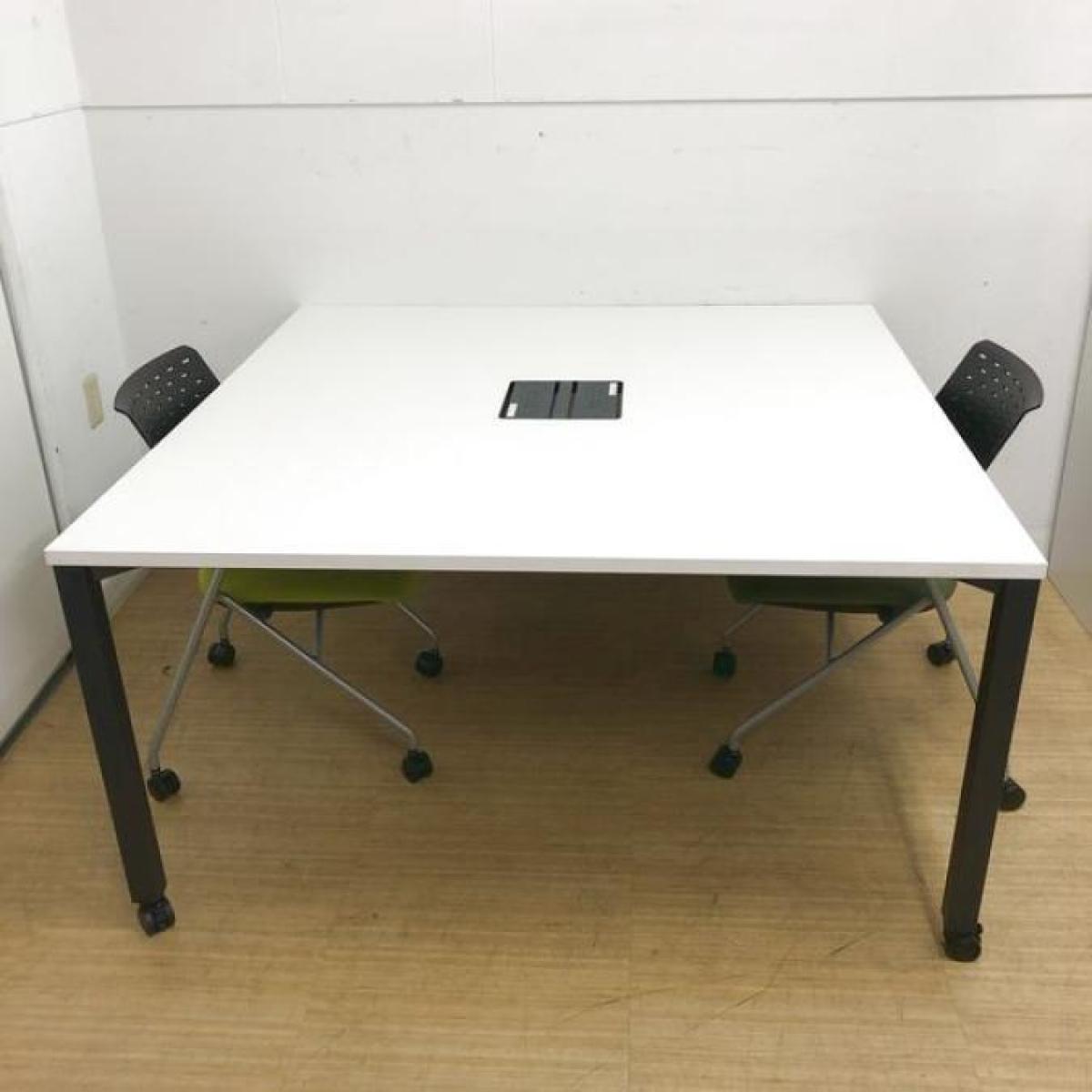 【オシャレなホワイト天板!シンプルなデザイン!!】■イトーキ製 アクトリンク ミーティングテーブル W1400㎜ ■電源タップ付き ■キャスター付き ■ホワイト- 新大阪店